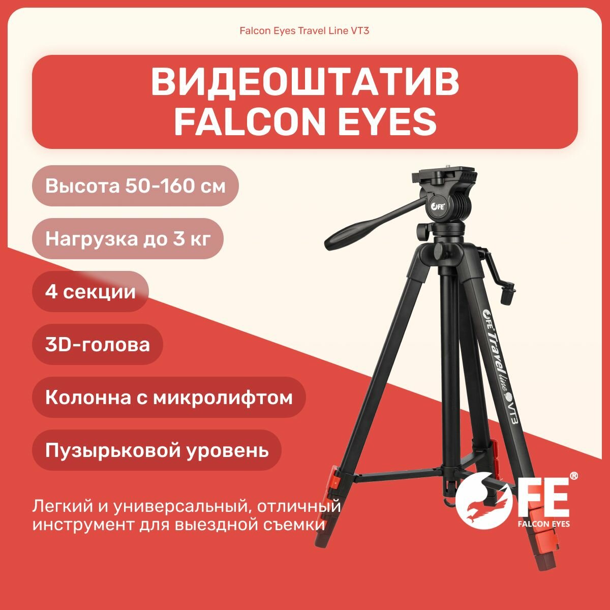 Видеоштатив Falcon Eyes Travel Line VT3 160 см, напольный для камеры, фотоаппарата, для видео, трипод