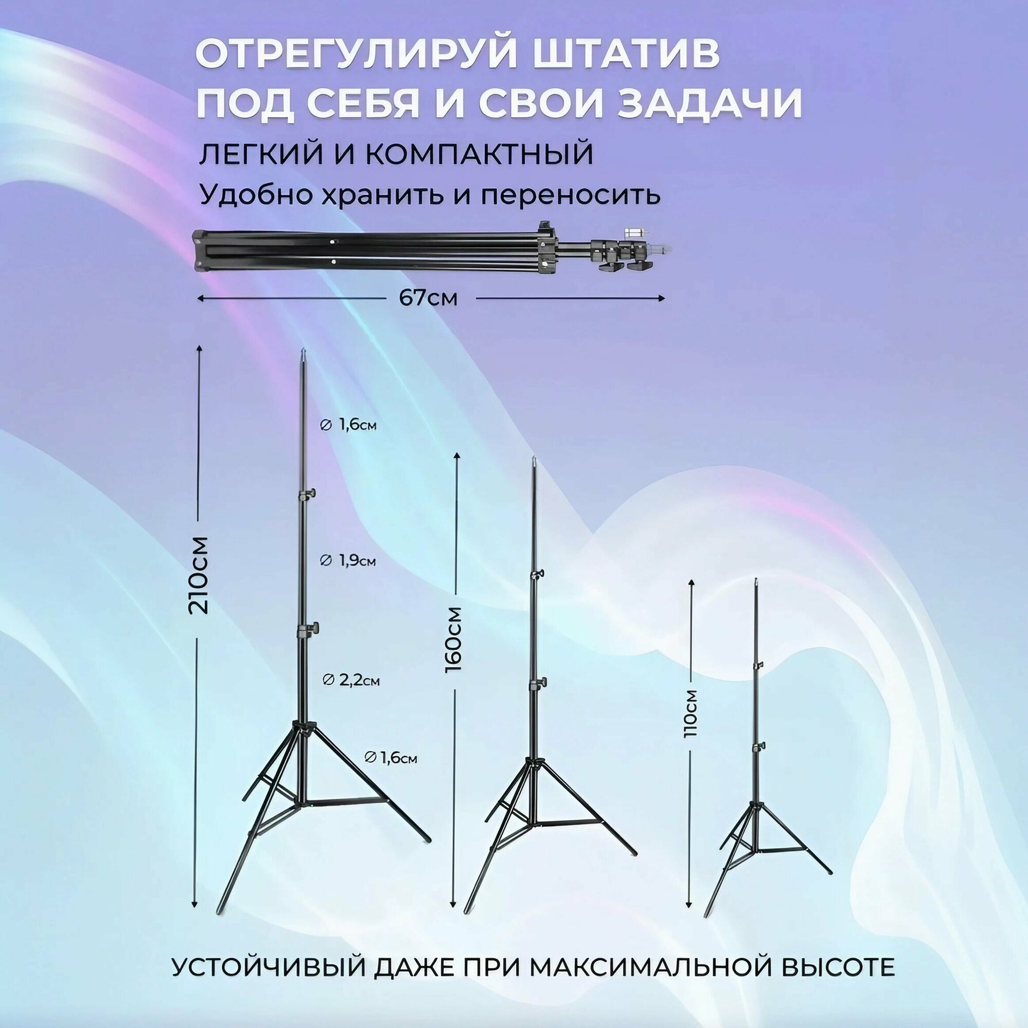 Трипод трехсекционный Штатив универсальныи профессиональный регулируемая высота от 70 до 210 см интересное: