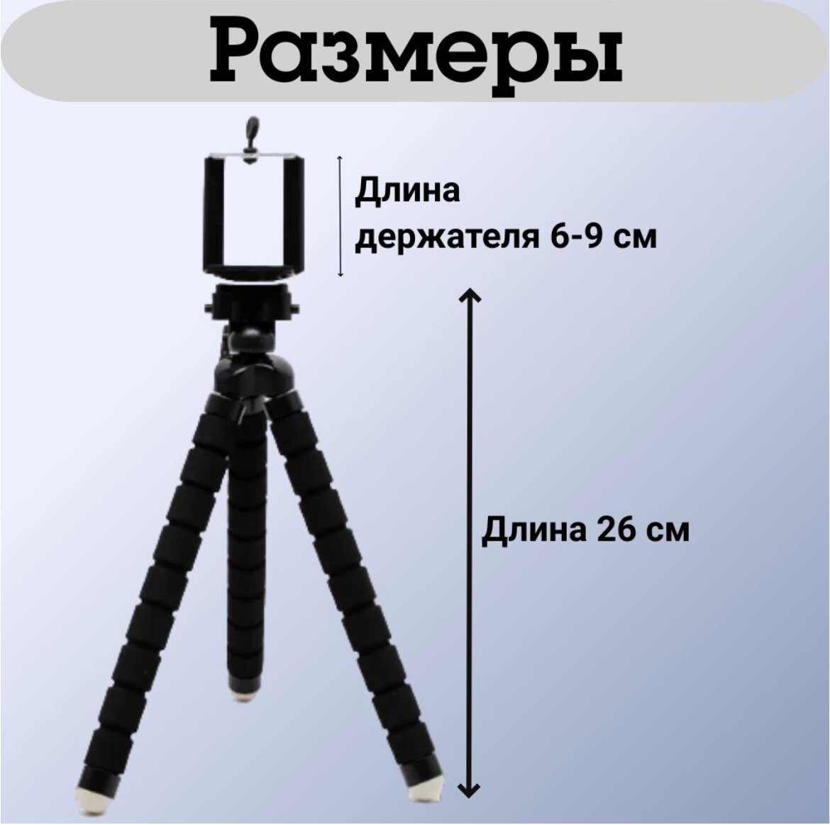 | Дополнительная информация | в комплекте крепление для телефона; подойдет для экшн-камер и фотоаппаратов; основание поворачивается на 360 градусов; длина в сложенном состоянии 26 см; максимальная нагрузка 1 кг; материал: металл, губка +ABS пластик; тип головки – шаровая; штатив оснащен стандартным интерфейсом 1/4"", для универсального использования; три гибкие ножки позволяют поставить на стол или закрепить на трубе, ручке двери ил любой другой поверхности |