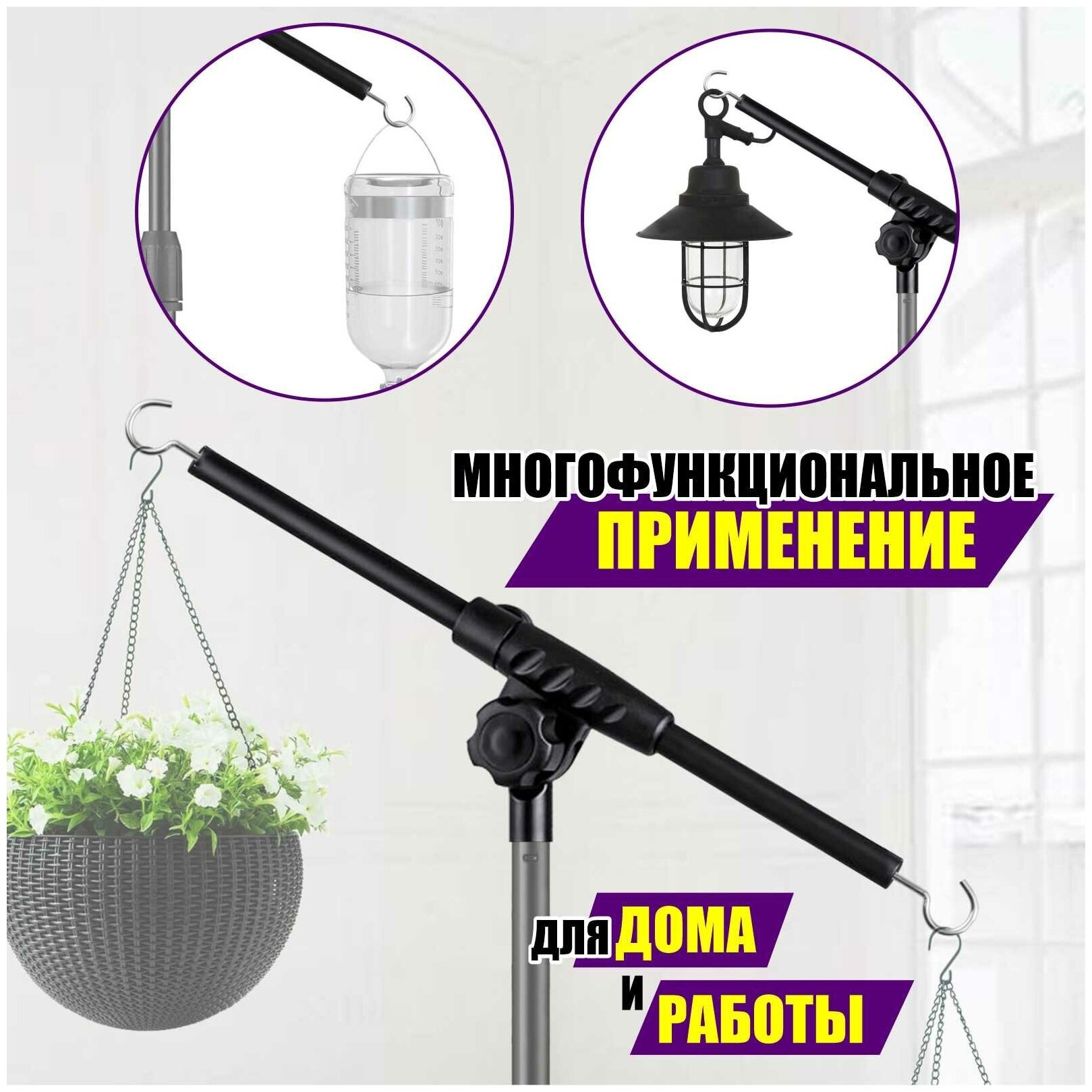 Многофункциональная горизонтальная планка 60 см с крючками с двух сторон с креплением на штатив с резьбой 3/8" интересное:
