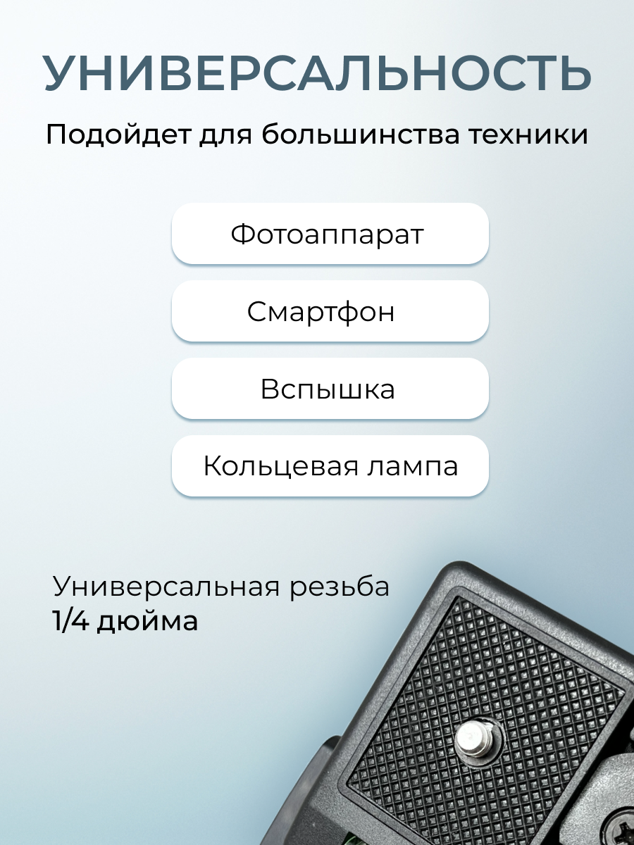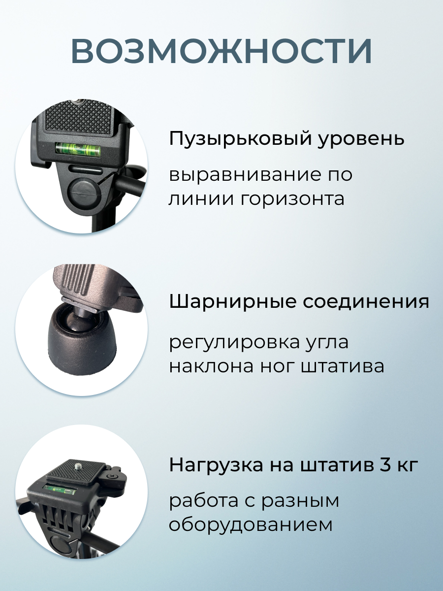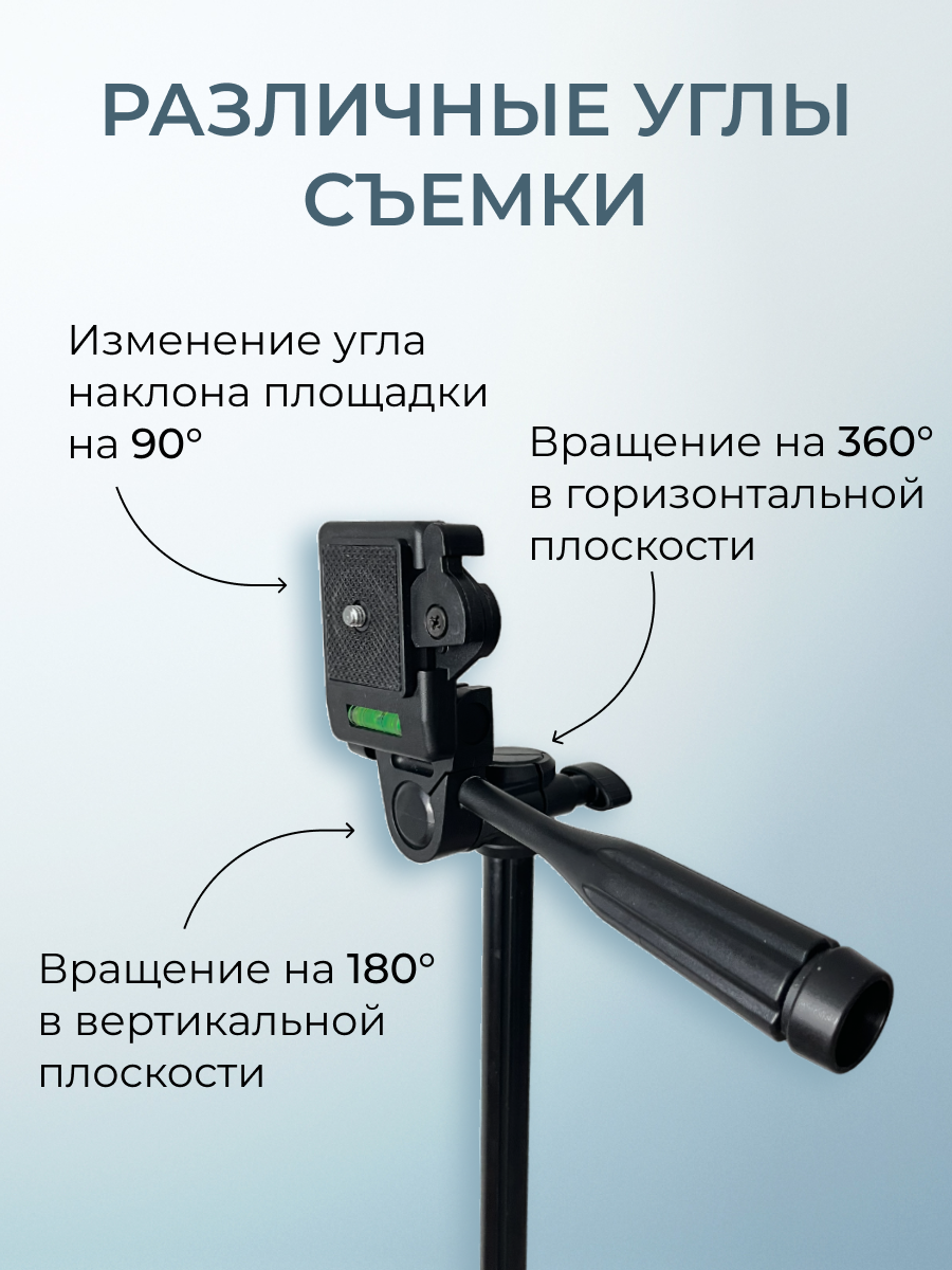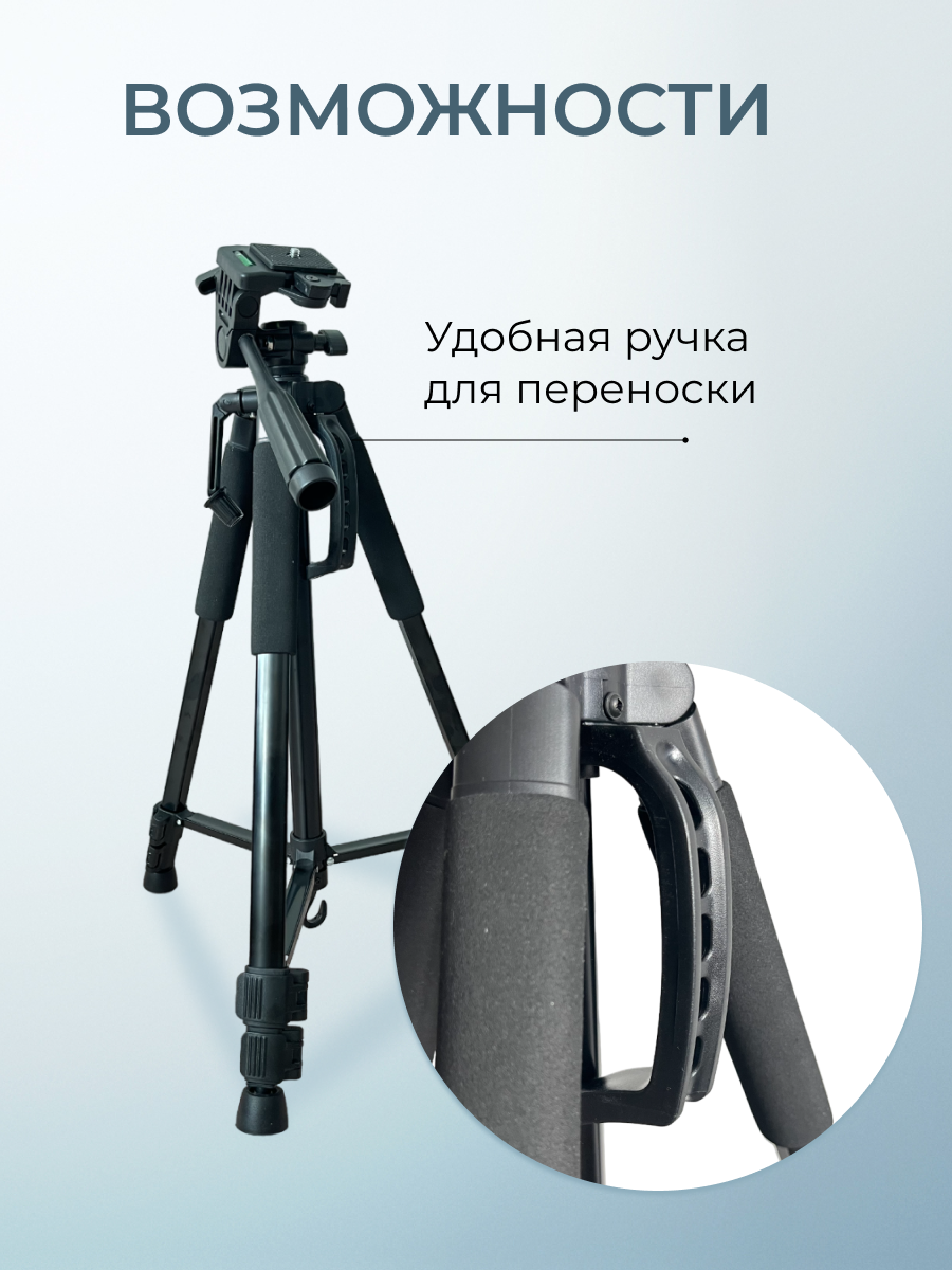 Штатив трипод для фотоаппарата, телефона, смартфона, камеры универсальный, напольный 50-140 см с держателем для телефона интересное: