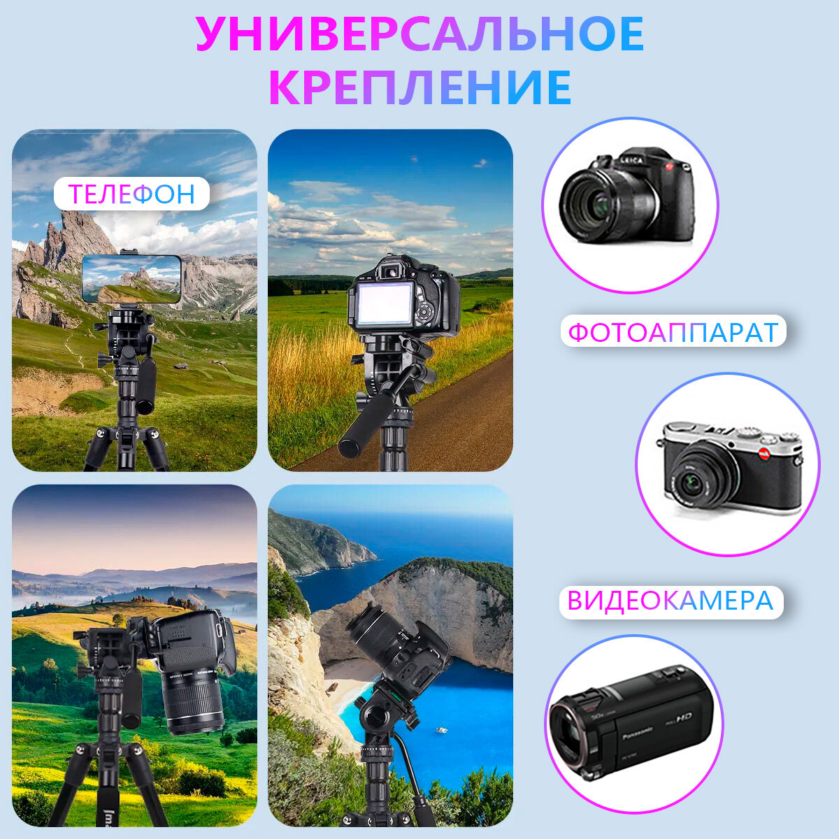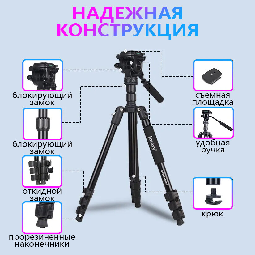 Штатив трипод/монопод для телефона, фотоаппарата, камеры напольный Jmary телескопический, высокий интересное: