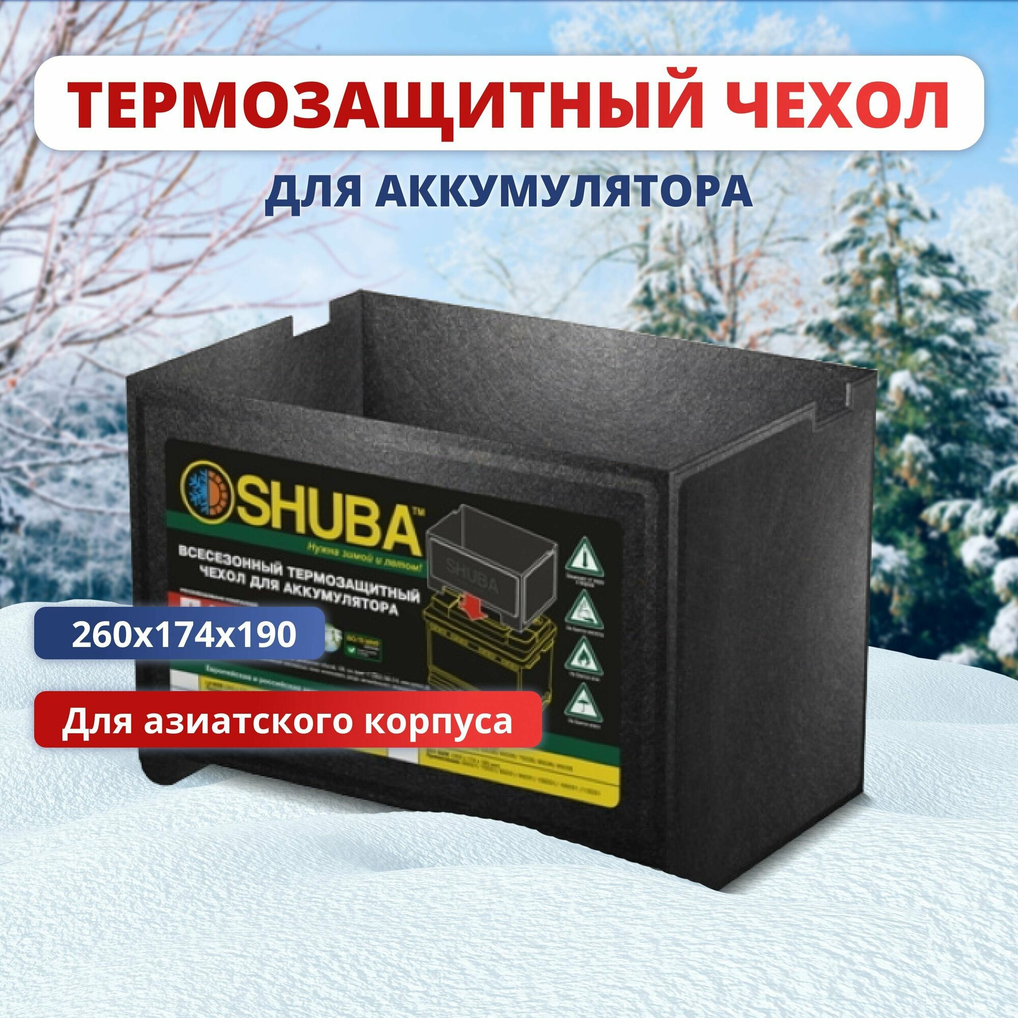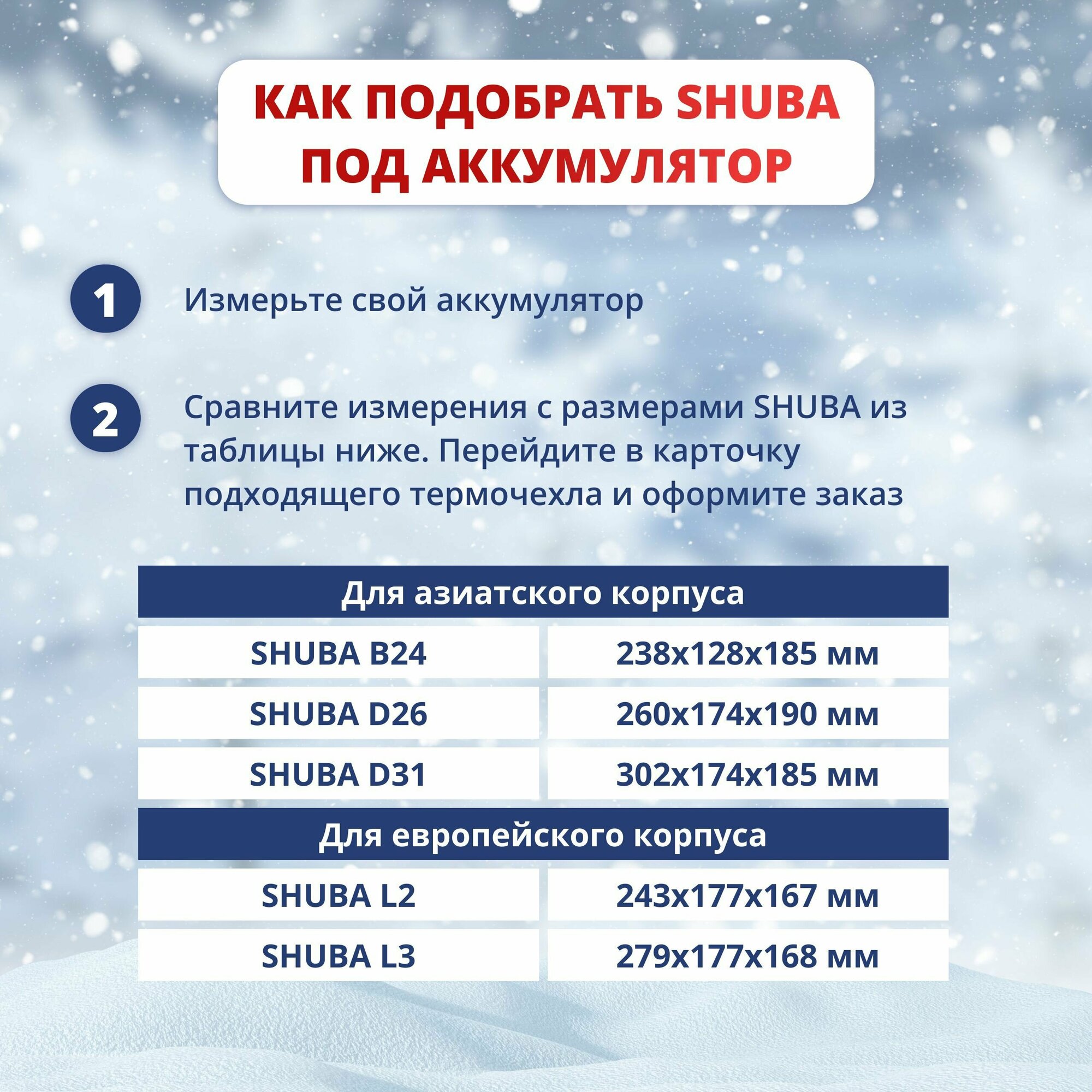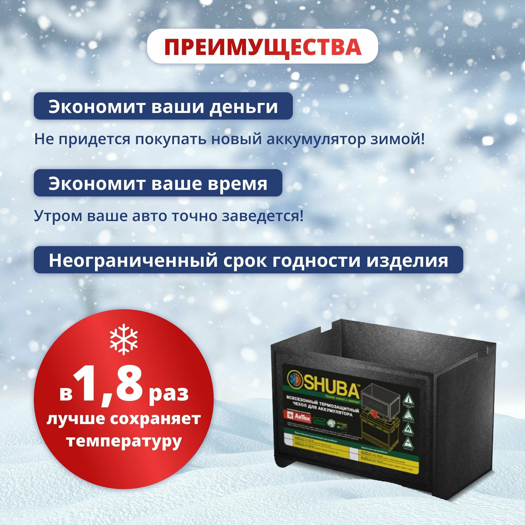 Всесезонный термозащитный чехол для аккумулятора автомобиля SHUBA D26, термокейс, утеплитель, чехол на акб авто 260x174x190 интересное: