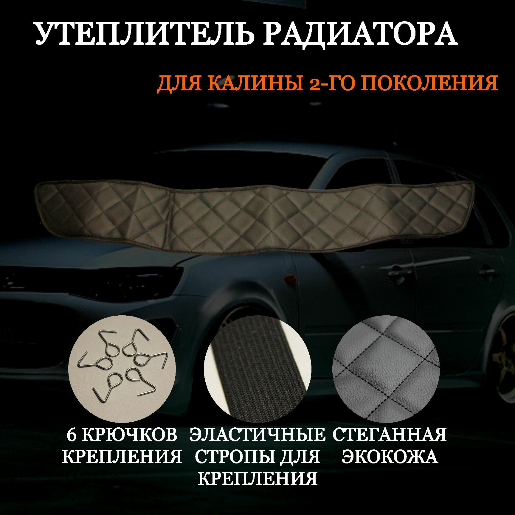 Купить Утеплитель радиатора ваз калина 2-го поколения, экокожа