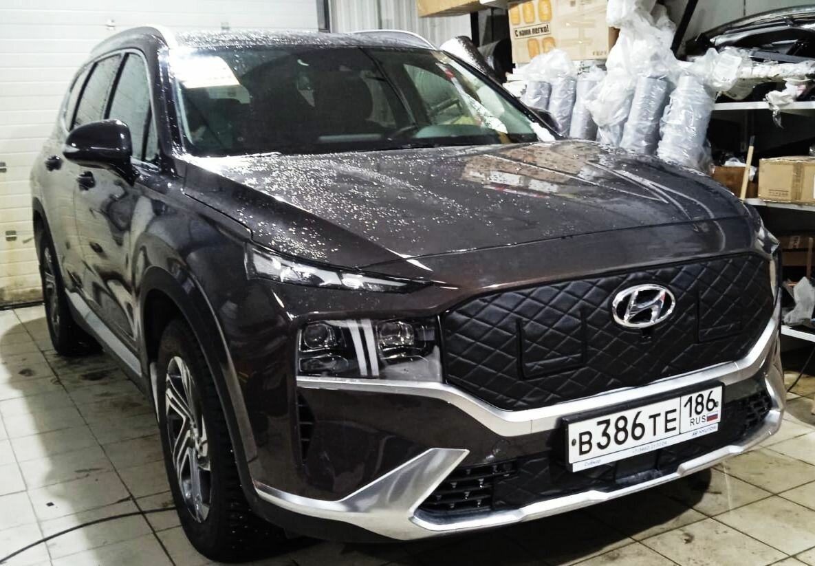 Купить Утеплитель радиатора для Hyundai Santa Fe 2020 -н.в. IV Рестайлинг Камера, Кармашки Без радара.