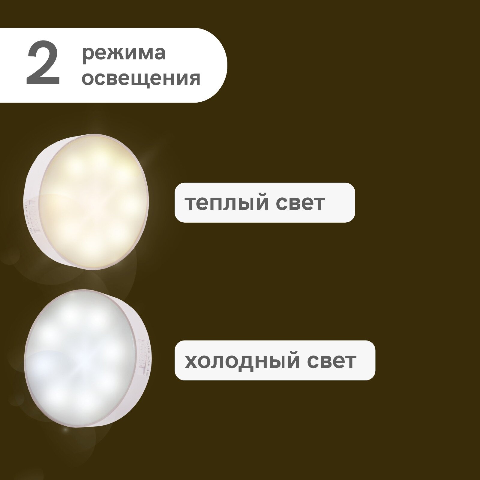 Беспроводной светодиодный светильник с датчиком движения на магнитном креплении. 2 режима освещения, 2 шт
