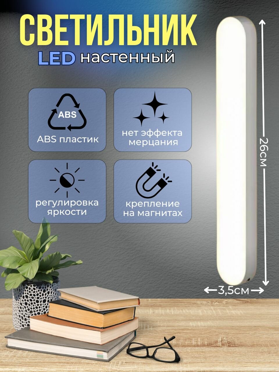 Светильник настенный беспроводной светодиодный 26 см с магнитным креплением интересное: