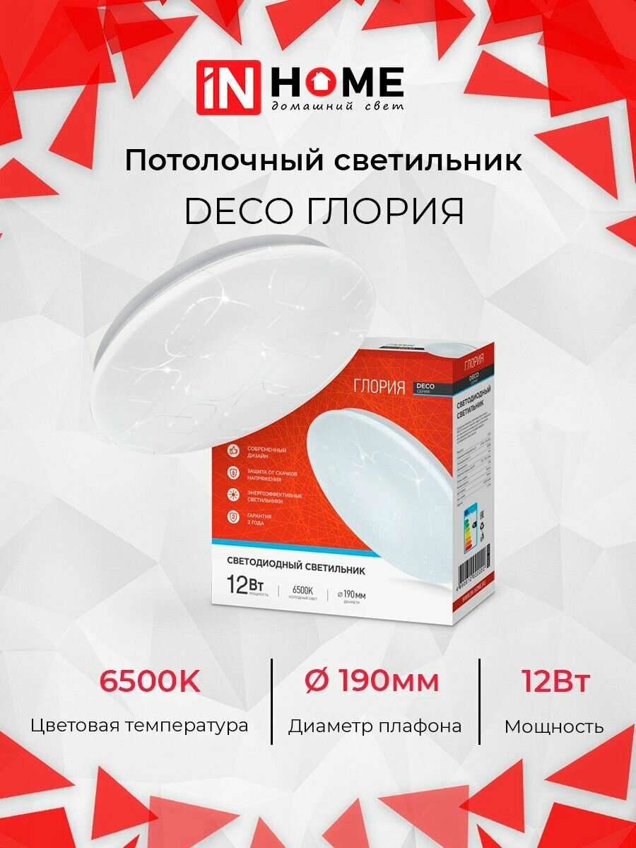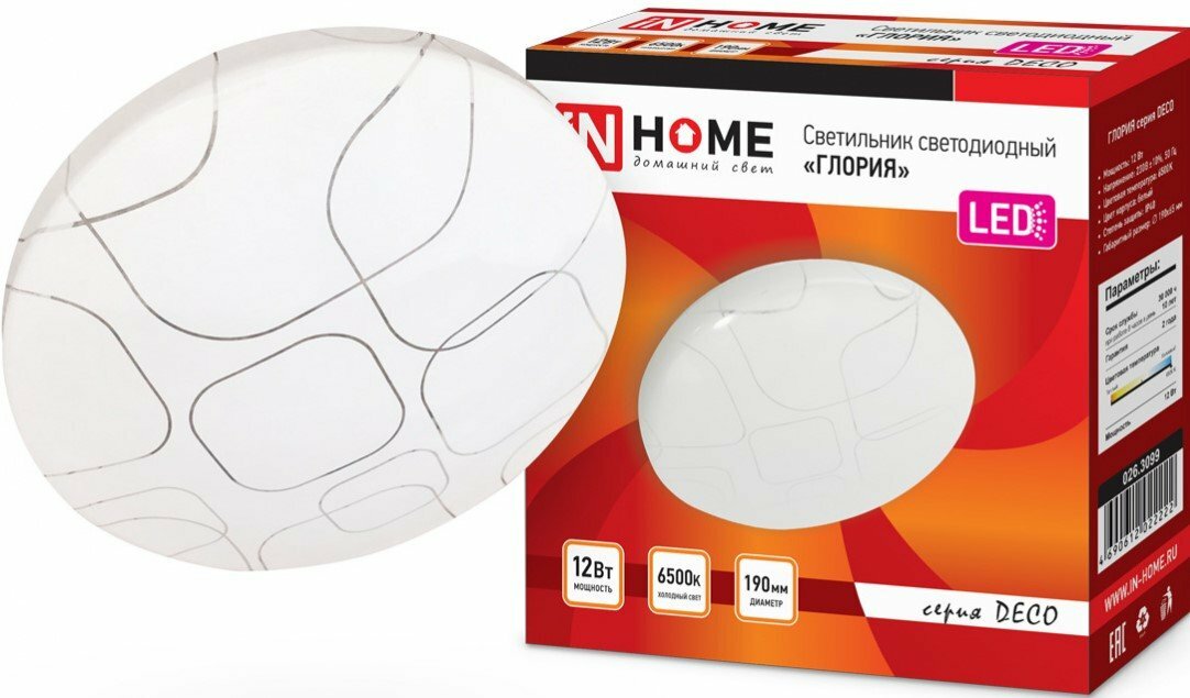 Светильник светодиод DECO 12Вт 6500К 780Лм 190мм глория IN HOME