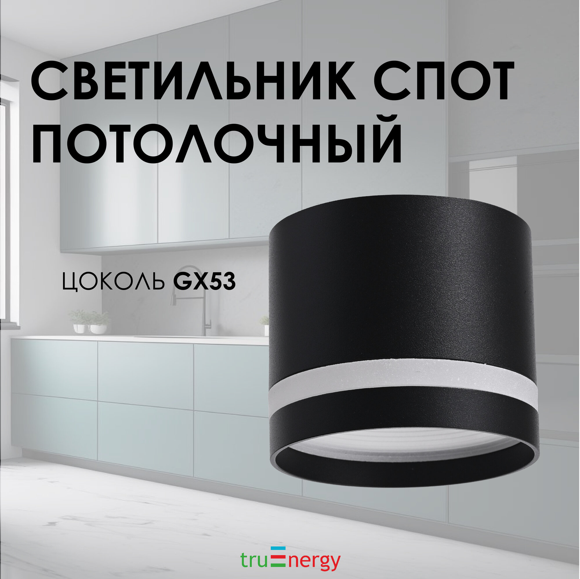 Накладной светильник truEnergy под лампу GX53 D82xH60мм IP20 черный/алюминий 21003