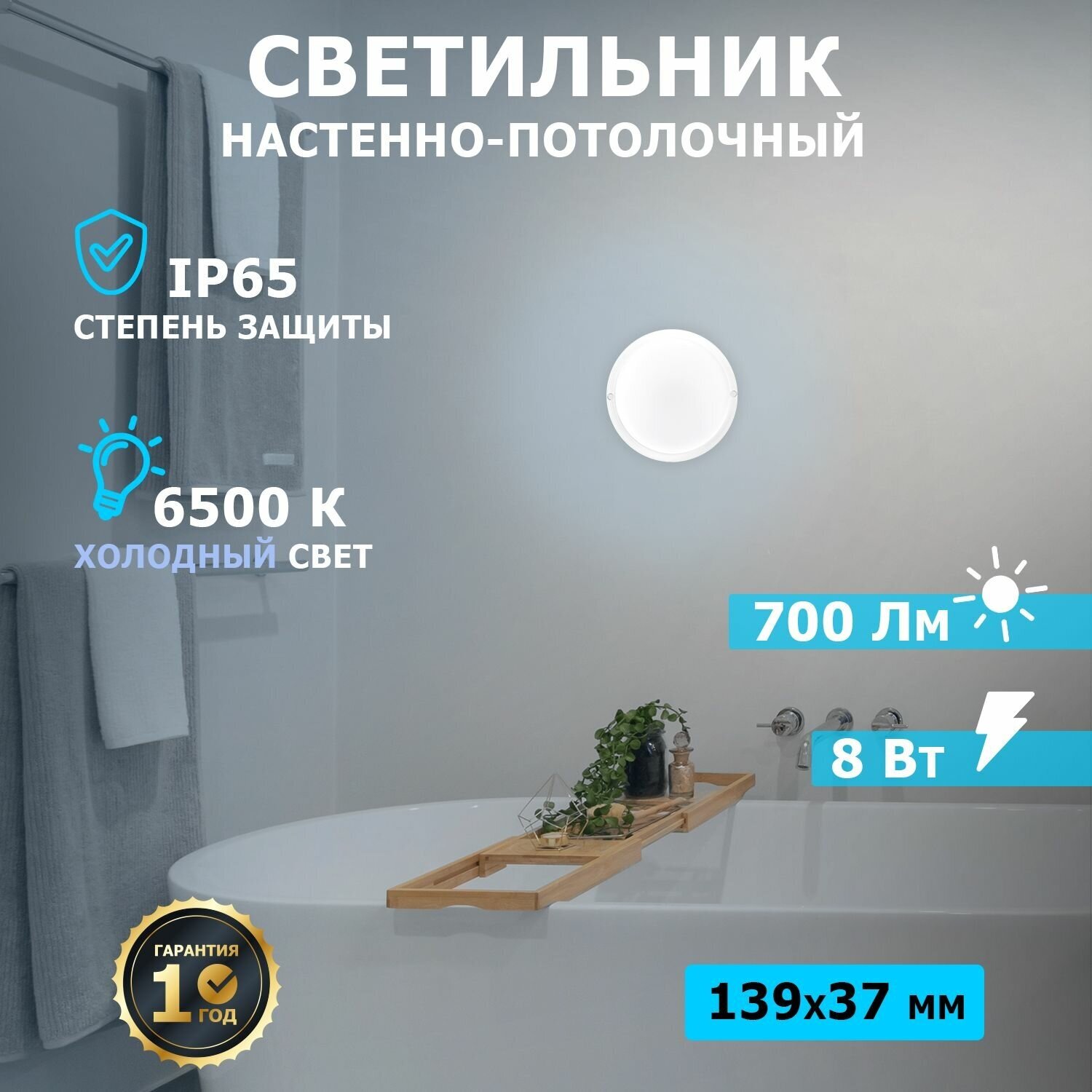 Светильник светодиодный Rexant ЖКХ-01, круглый, 8 Вт, 6500 К, IP65