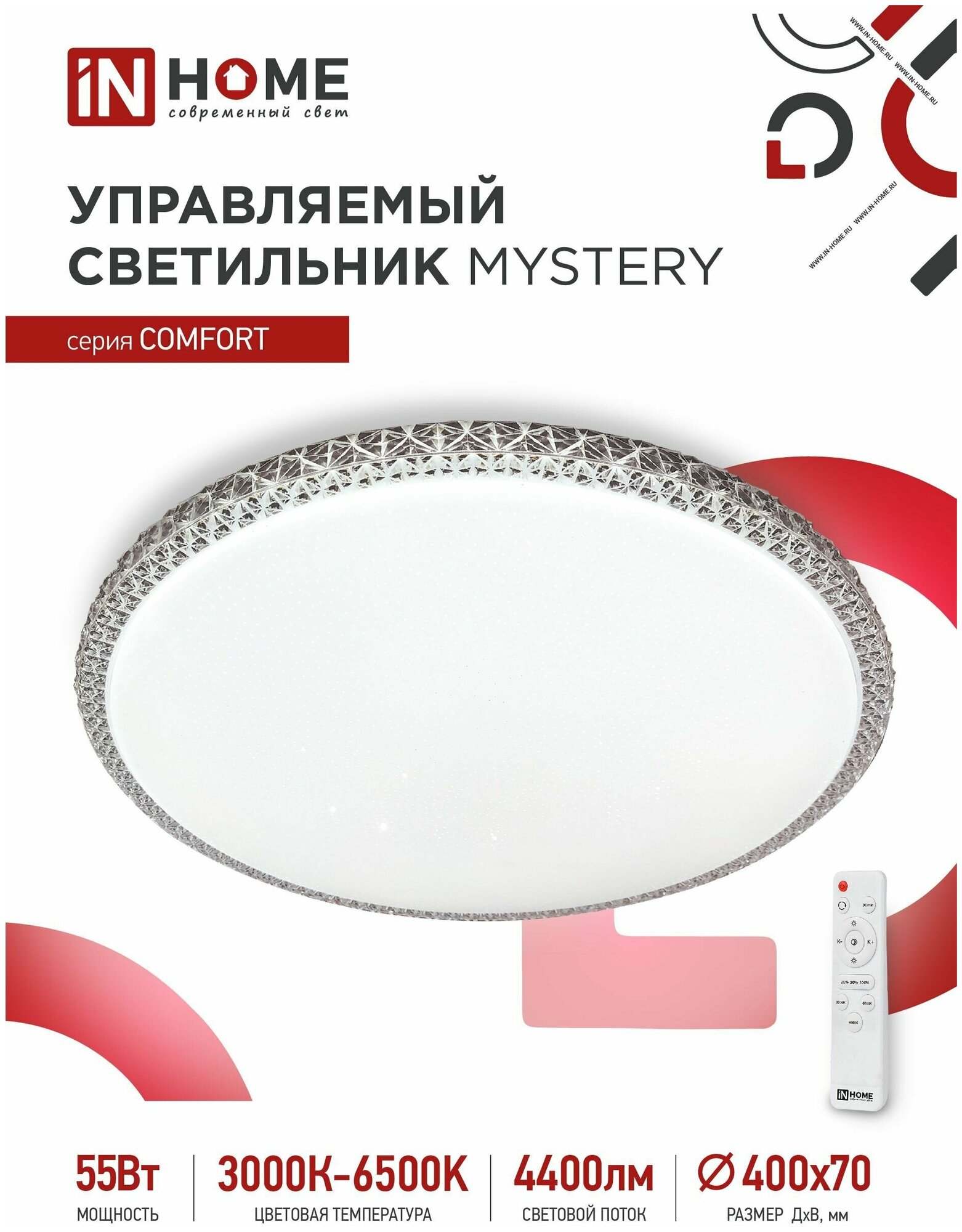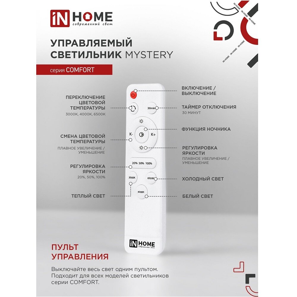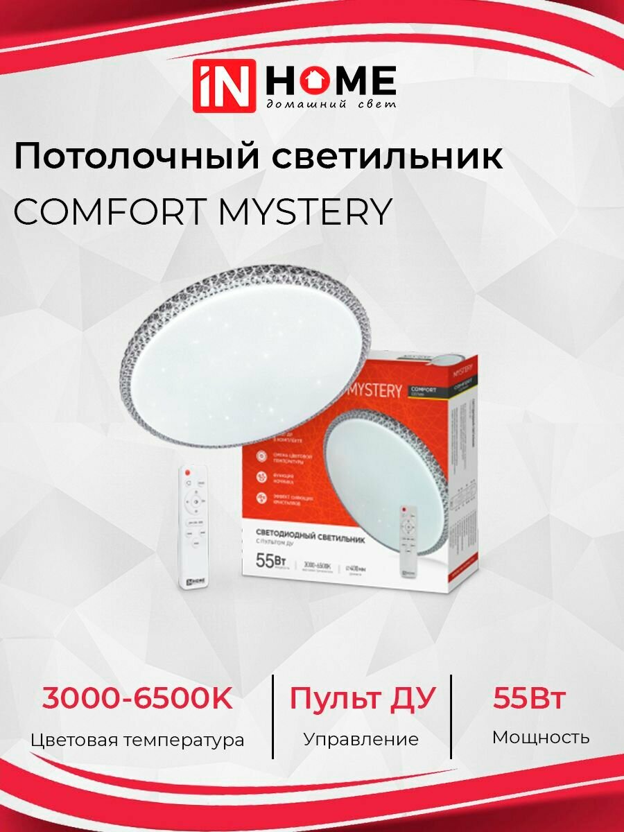 Светильник диодный COMFORT MYSTERY 75Вт 230В 3000-6500K 6000Лм с пультом ДУ IN HOME 4690612034829