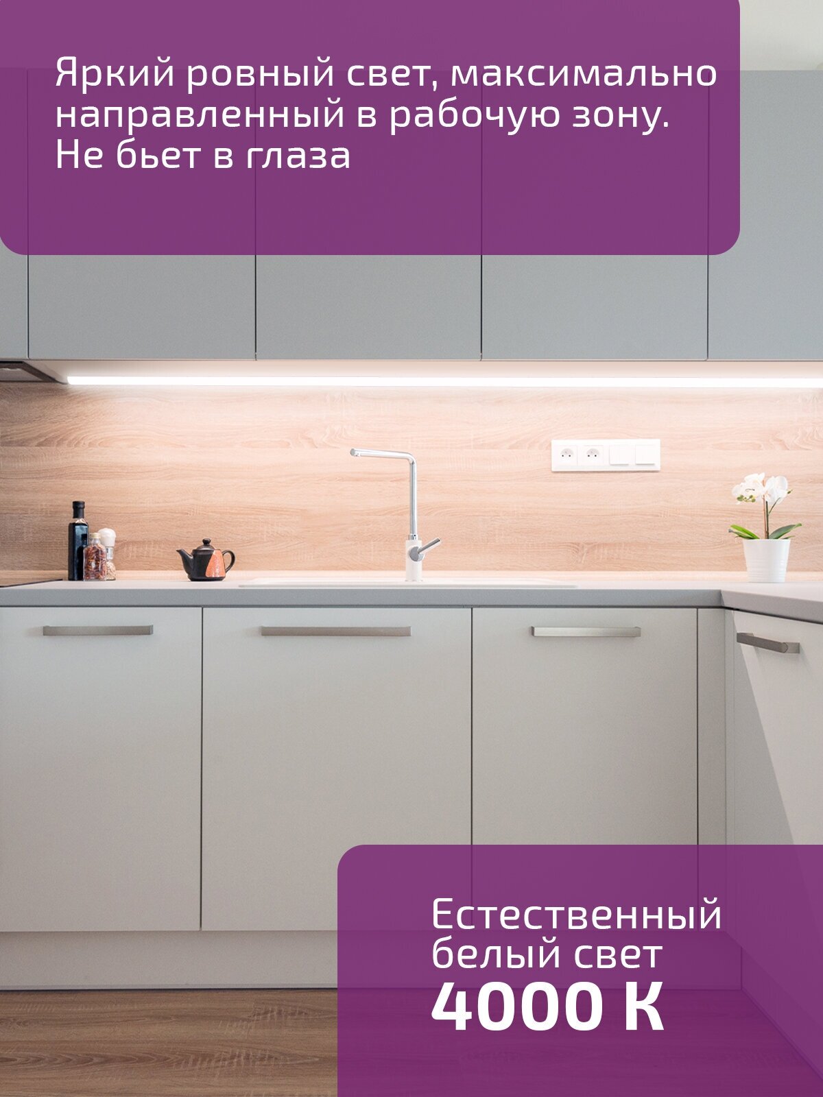 Светильник RIGHT SOLUTION светодиодный угловой 16,5 Вт, 1200мм, 4000K, под навесной шкаф или полку, с сенсорным диммируемым выключателем (1 шт.) интересное: