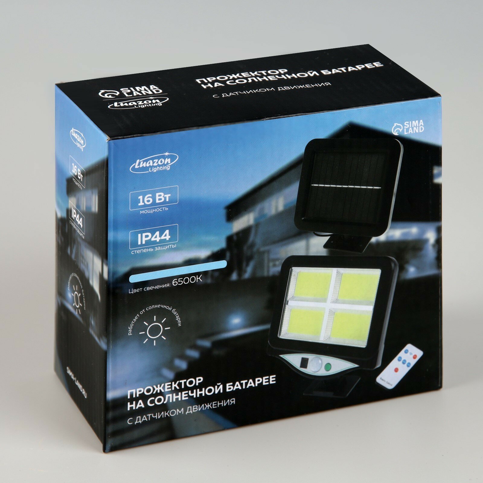 Светодиодный прожектор на солнечной батарее 16 Вт, выносная панель, пульт ДУ, 15 × 13 × 7 см, 6500К интересное: