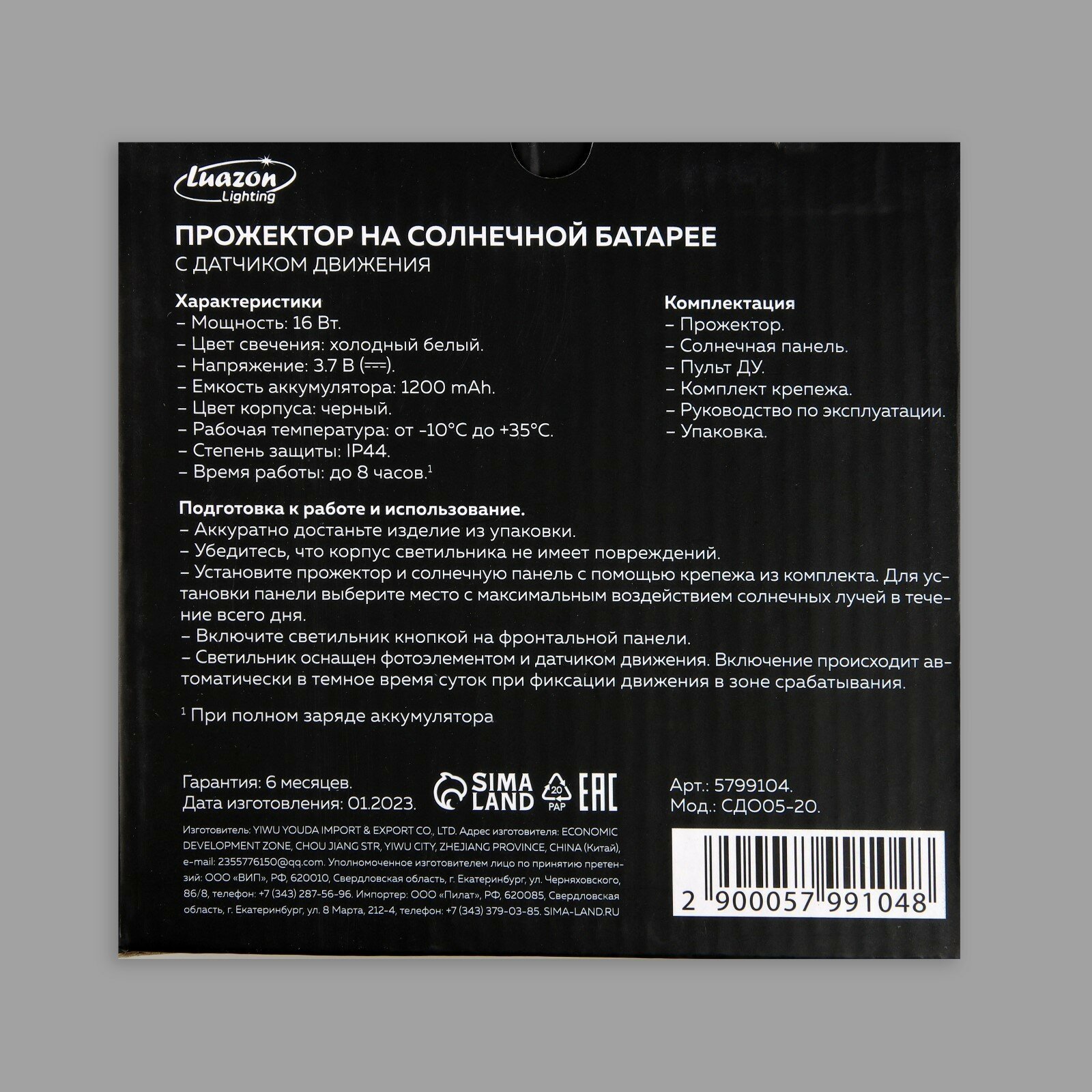 Ниже Вы можете прочитать отзывы на Светодиодный прожектор на солнечной батарее 16 Вт, выносная панель, пульт ДУ, 15 × 13 × 7 см, 6500К, ознакомится с подробными характеристиками, посмотреть интересные обзоры и фотографии на Светодиодный прожектор на солнечной батарее 16 Вт, выносная панель, пульт ДУ, 15 × 13 × 7 см, 6500К.