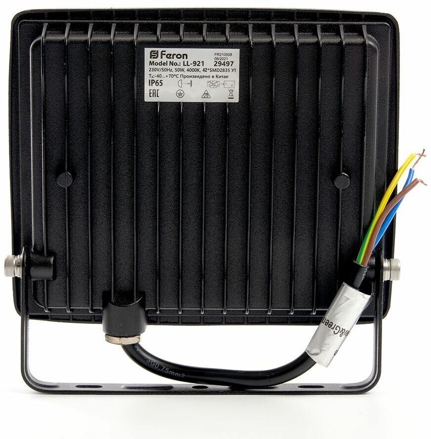 Светодиодный прожектор 2835 SMD 50W 6400K IP65 AC220V/50Hz, черный Feron LL-921 32102