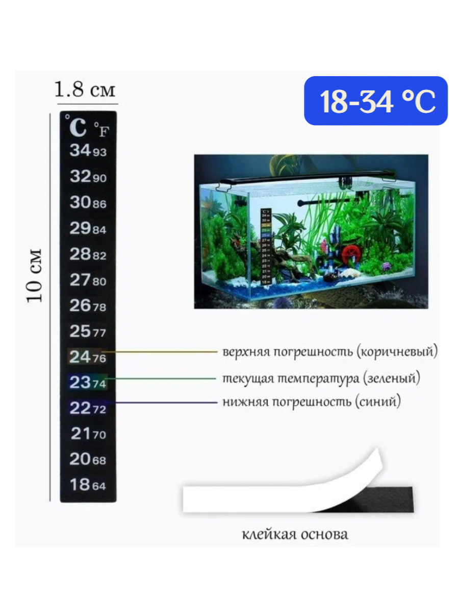 Термометр наклейка для аквариума, емкости для брожения от 18 до 34 градусов, 5шт интересное: