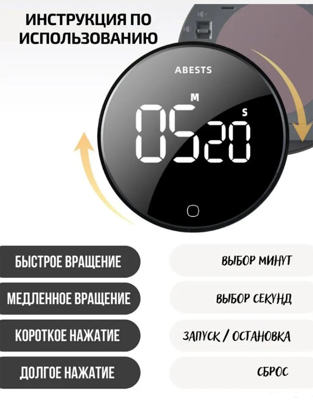 Электронный таймер поворотный NK5260, крепление магнит/скотч, белый