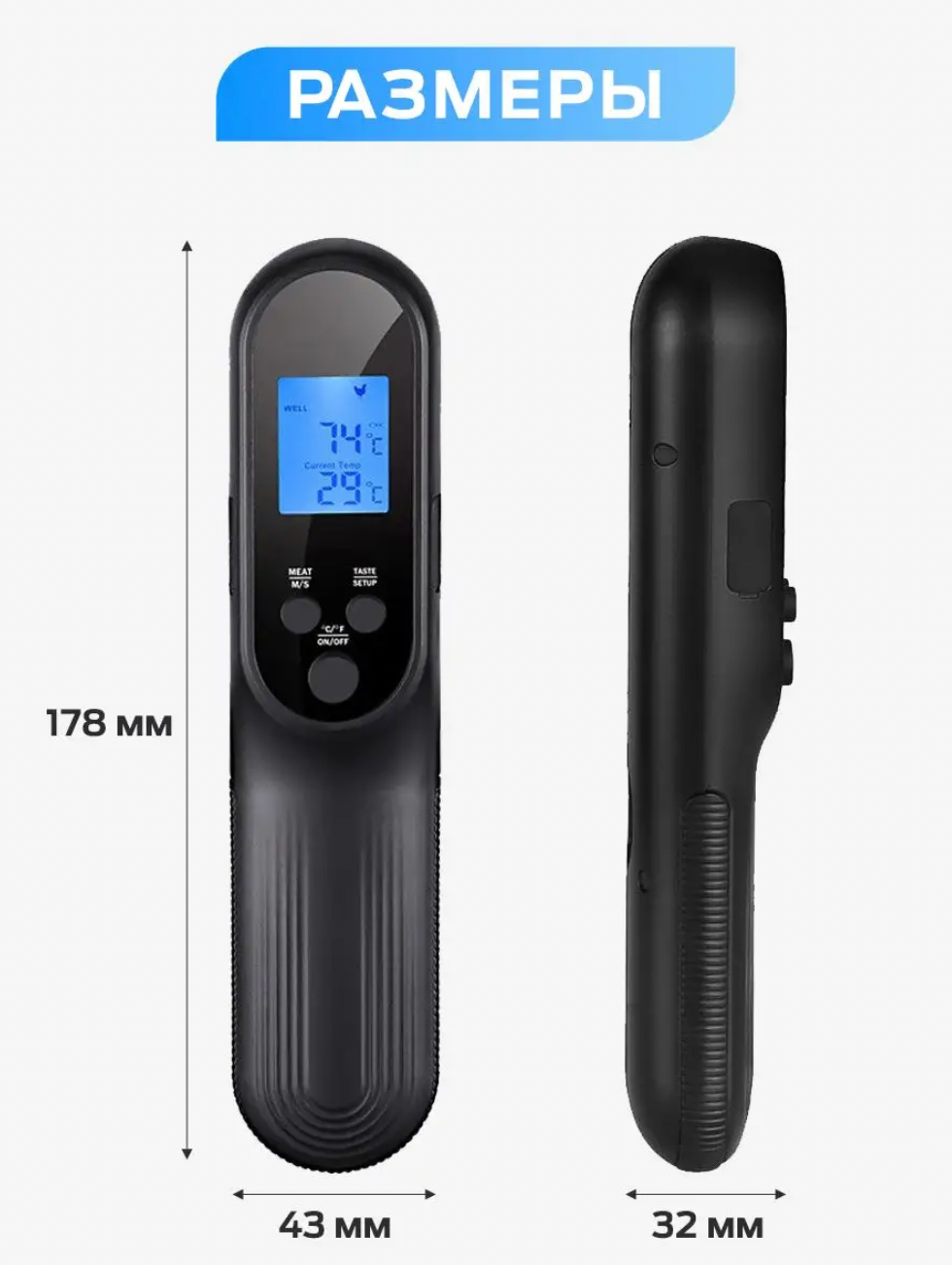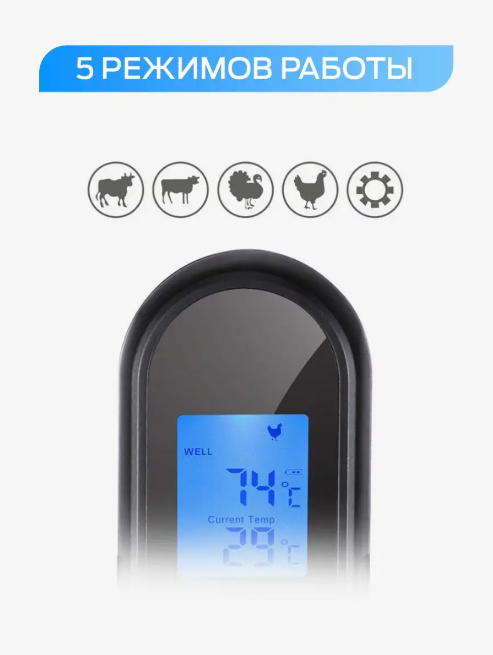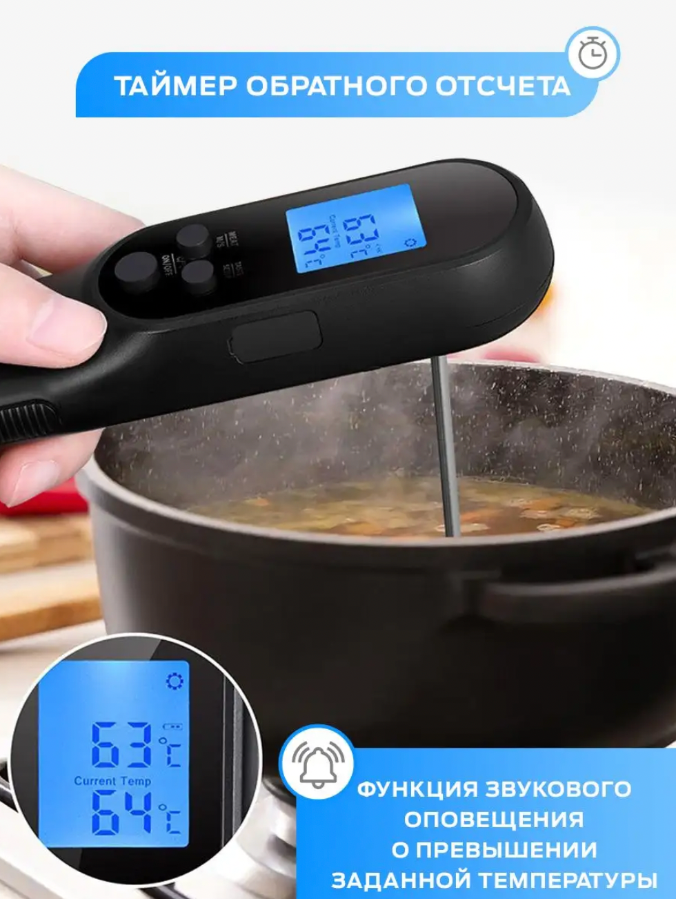 Кулинарный термометр электронный со щупом из нержавеющей стали, термометр для еды, мяса, вина, провод 1 метр / таймер кухонный