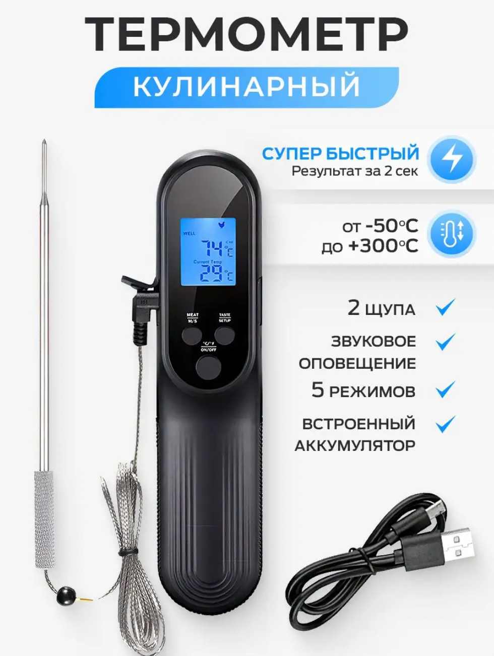 Кулинарный термометр с двумя щупами, ЛДТ-133 интересное: