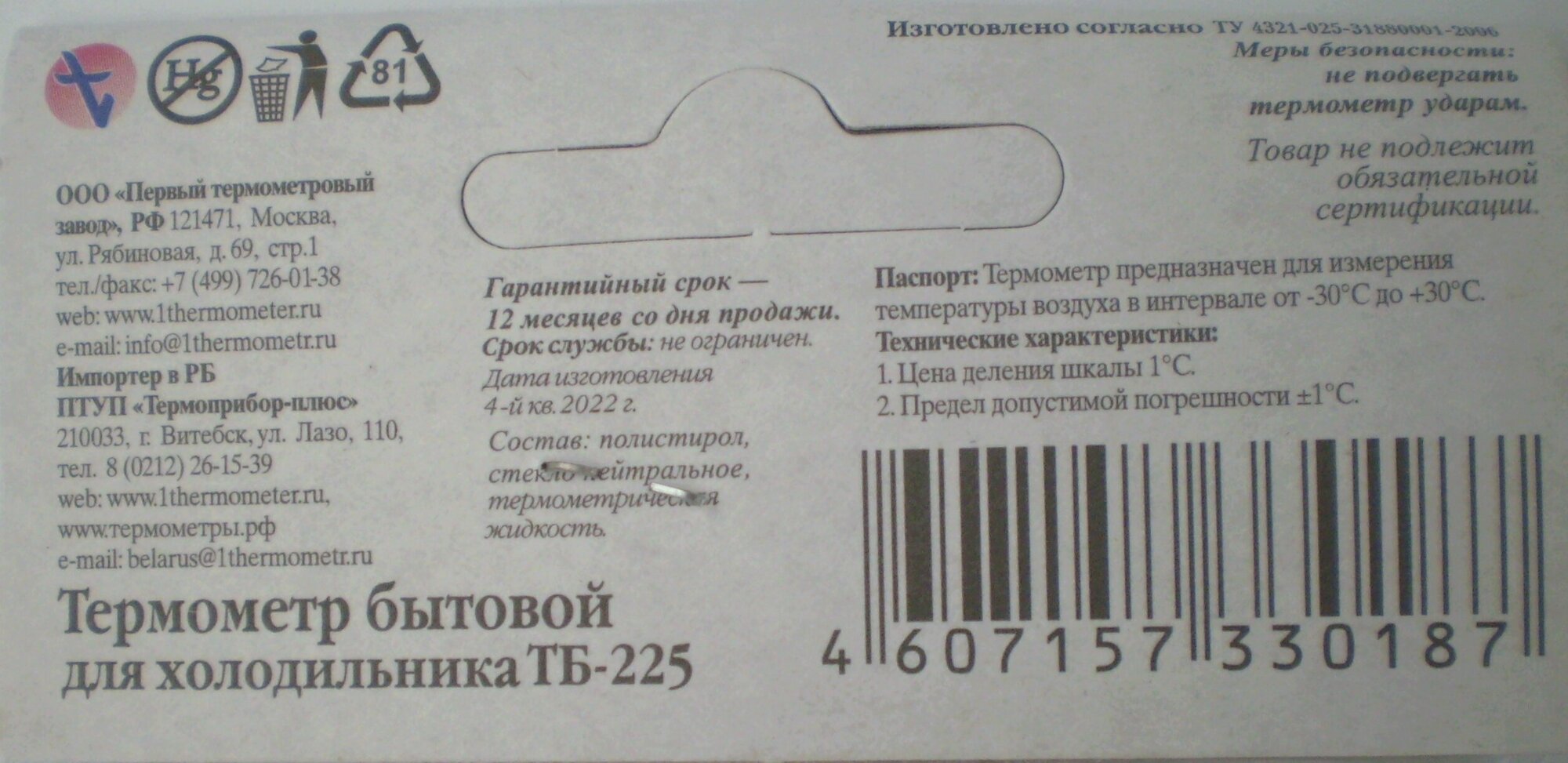 Ниже Вы можете прочитать отзывы на Термометр для холодильника ТБ-225, ознакомится с подробными характеристиками, посмотреть интересные обзоры и фотографии на Термометр для холодильника ТБ-225.