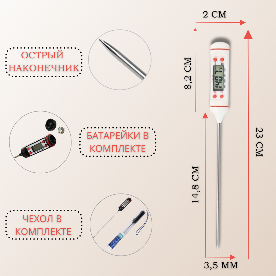 Кулинарный термометр электронный со щупом из нержавеющей стали, термометр для еды, мяса, вина, провод 1 метр / таймер кухонный