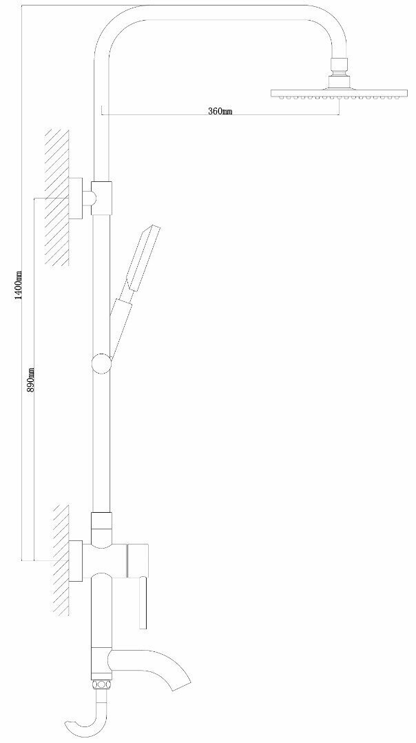 | Дополнительная информация | высота стойки для душа: 1400 мм; длина верхнего душа: 200 мм; ширина верхнего душа: 200 мм |