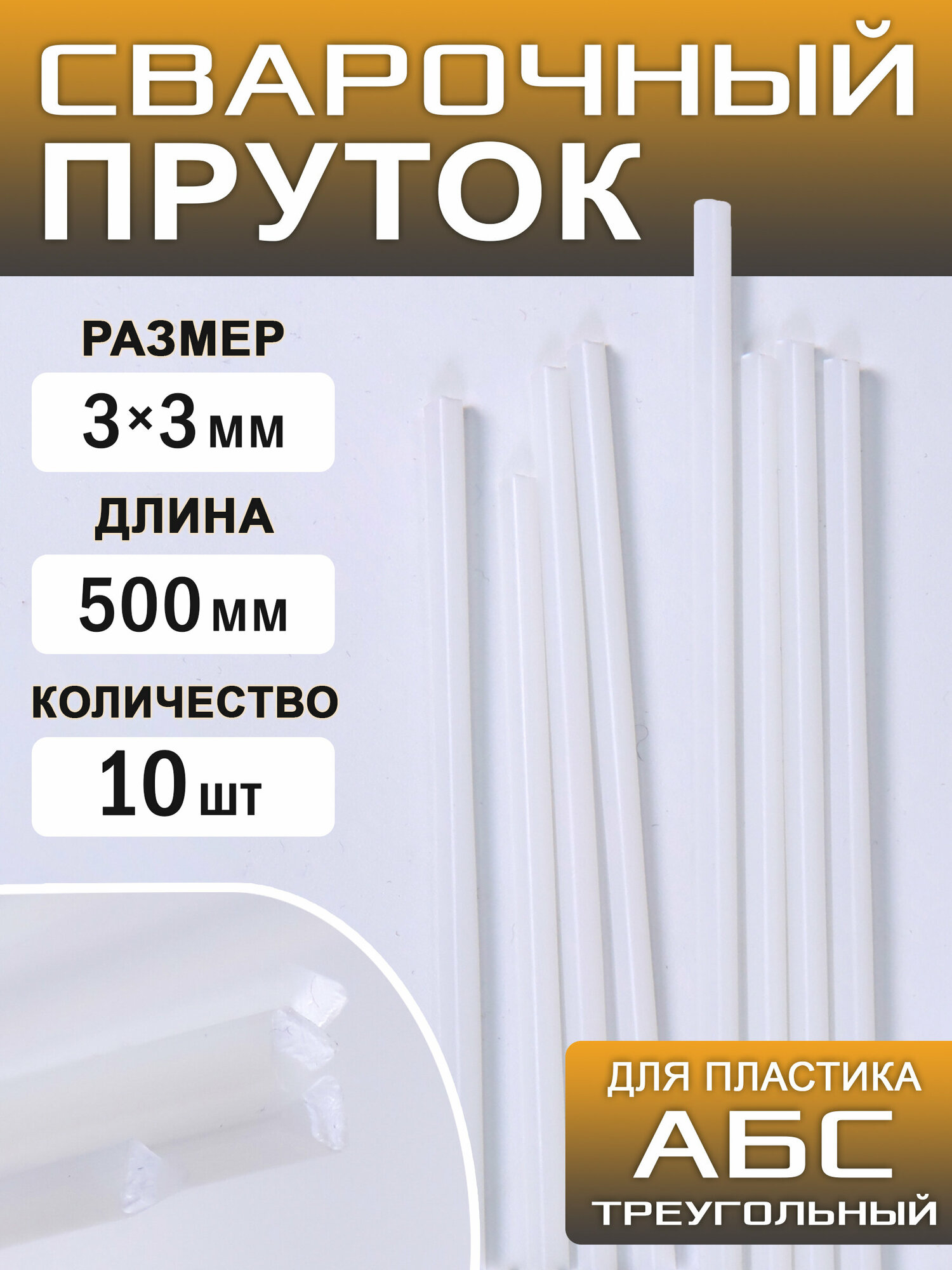 Сварочный пруток пластиковый, треугольный, АБС (ABS), 10 штук, 500х3х3 мм, ArtTim интересное: