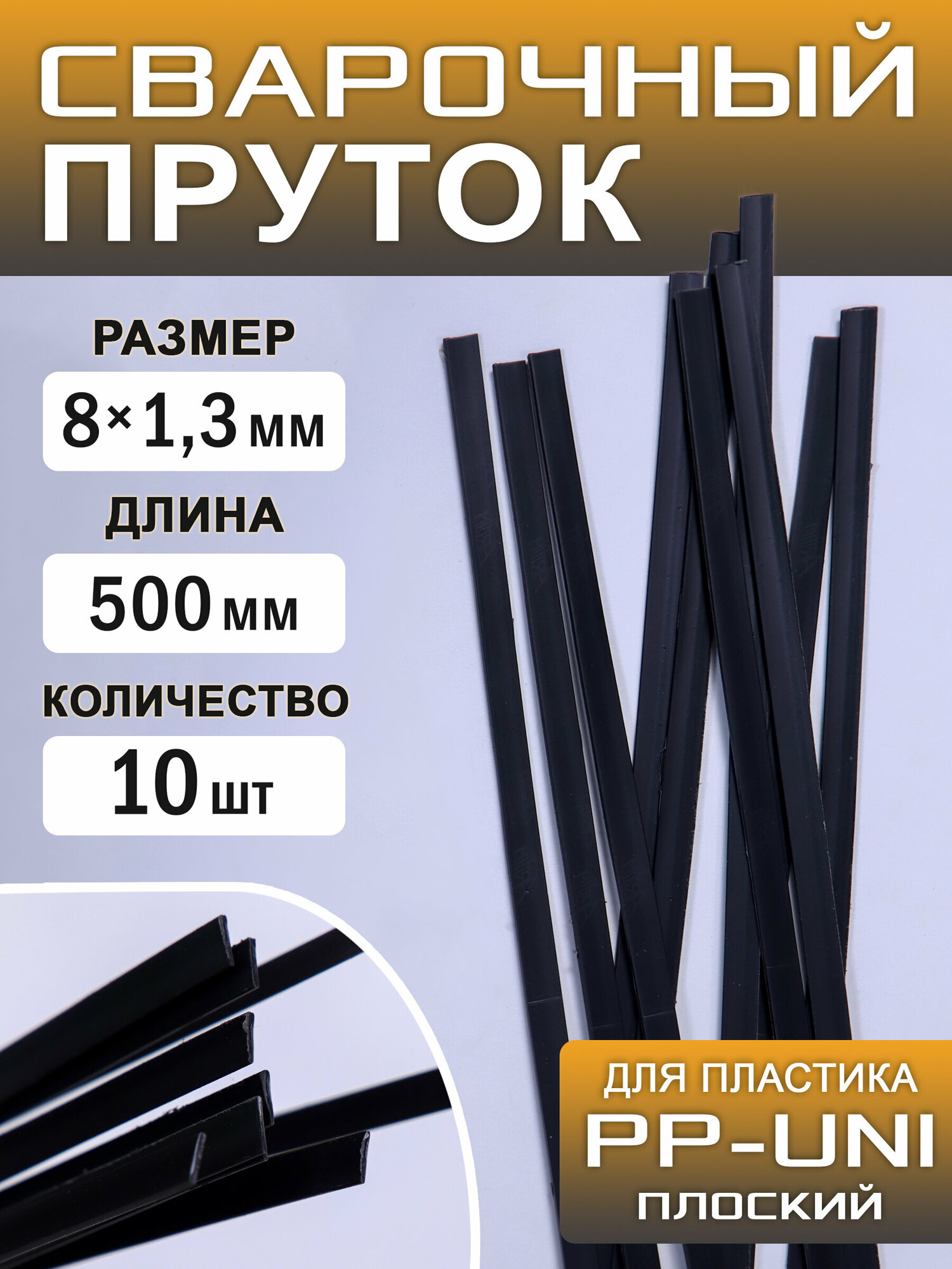 Купить Сварочный пруток пластиковый, плоский, ПП (РР-uni), (PP-EPDM), полипропиленовый, 10 штук, 500х8х1,3 мм, ArtTim