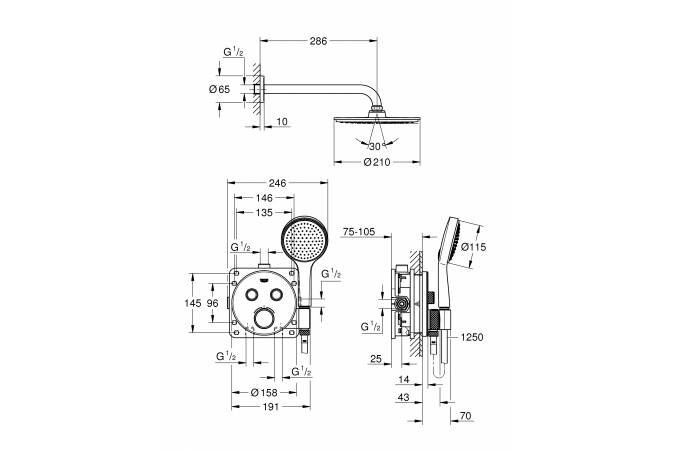 Душевой комплект Grohe Grohtherm SmartControl 34743000 с внутренней частью