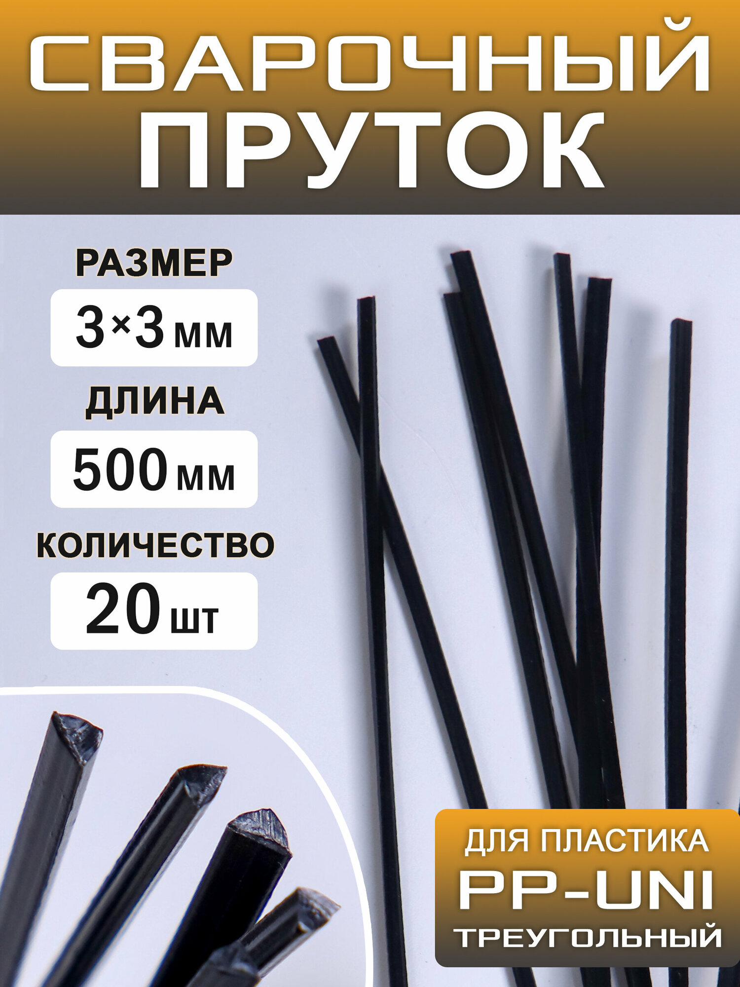 Купить Сварочный пруток пластиковый, треугольный, ПП (РР-uni), (PP-EPDM), полипропиленовый, 20 штук, 500х3х3 мм, ArtTim