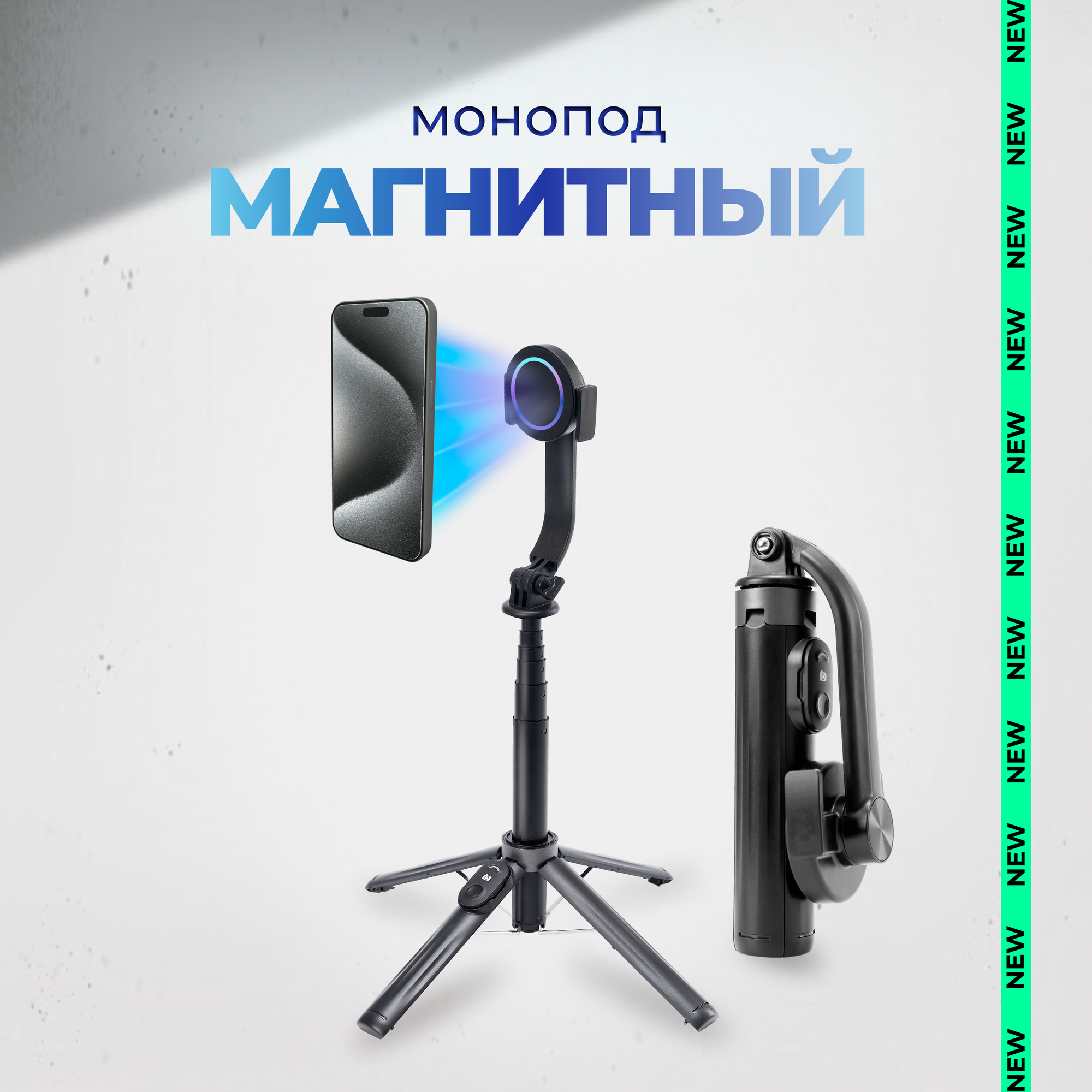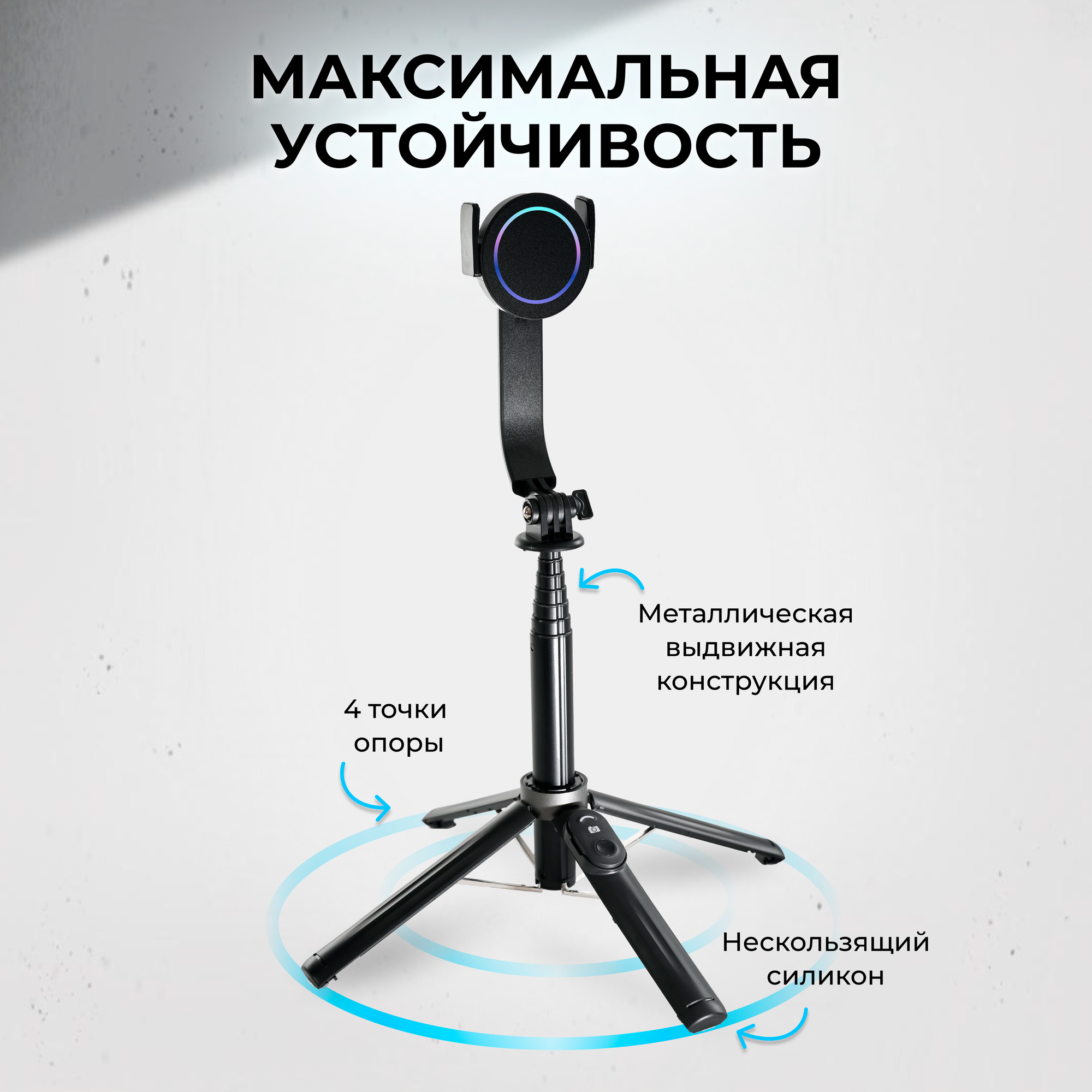 Монопод трипод для телефона штатив на магнитном держателе с Bluetooth пультом, селфи палка интересное: