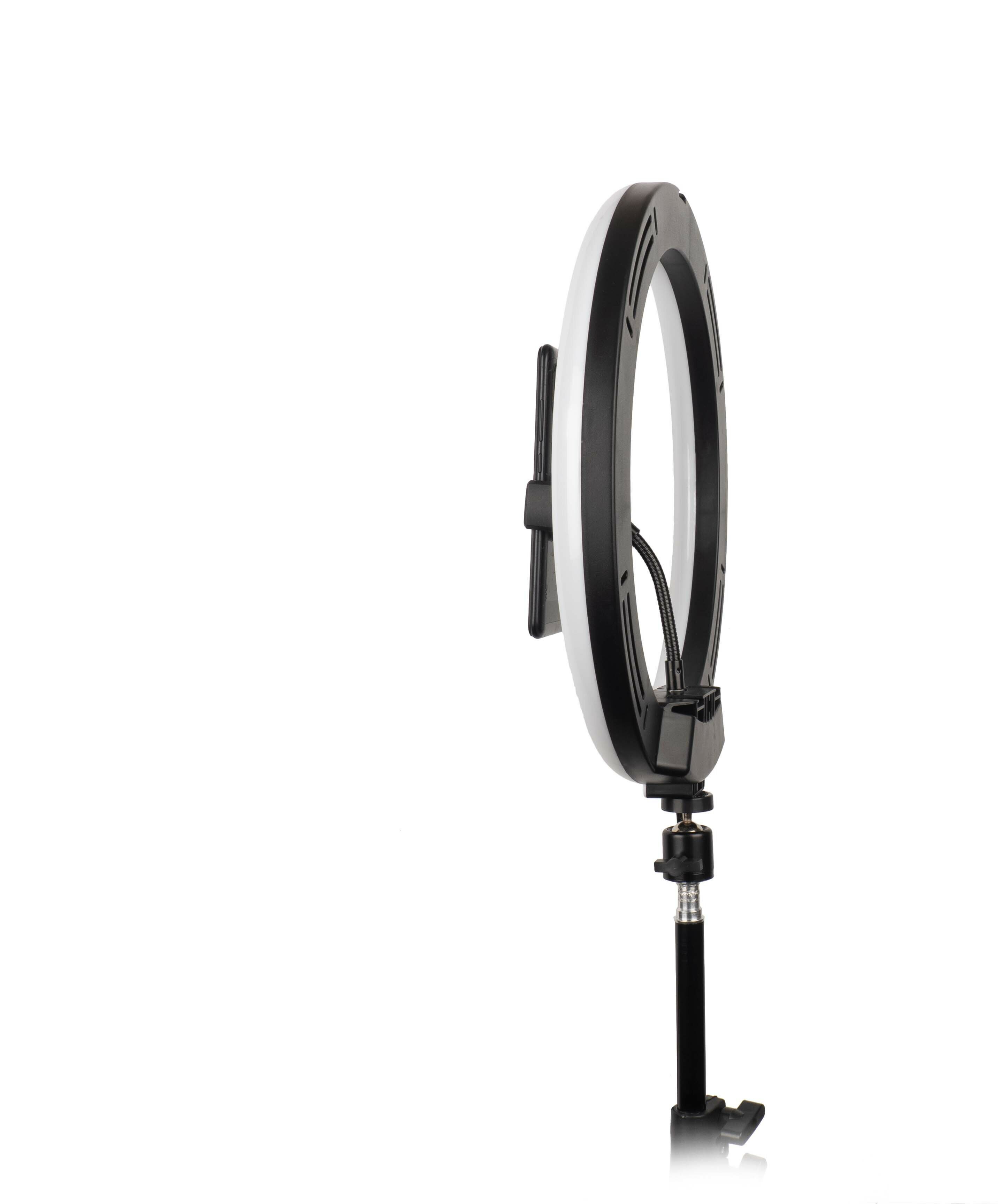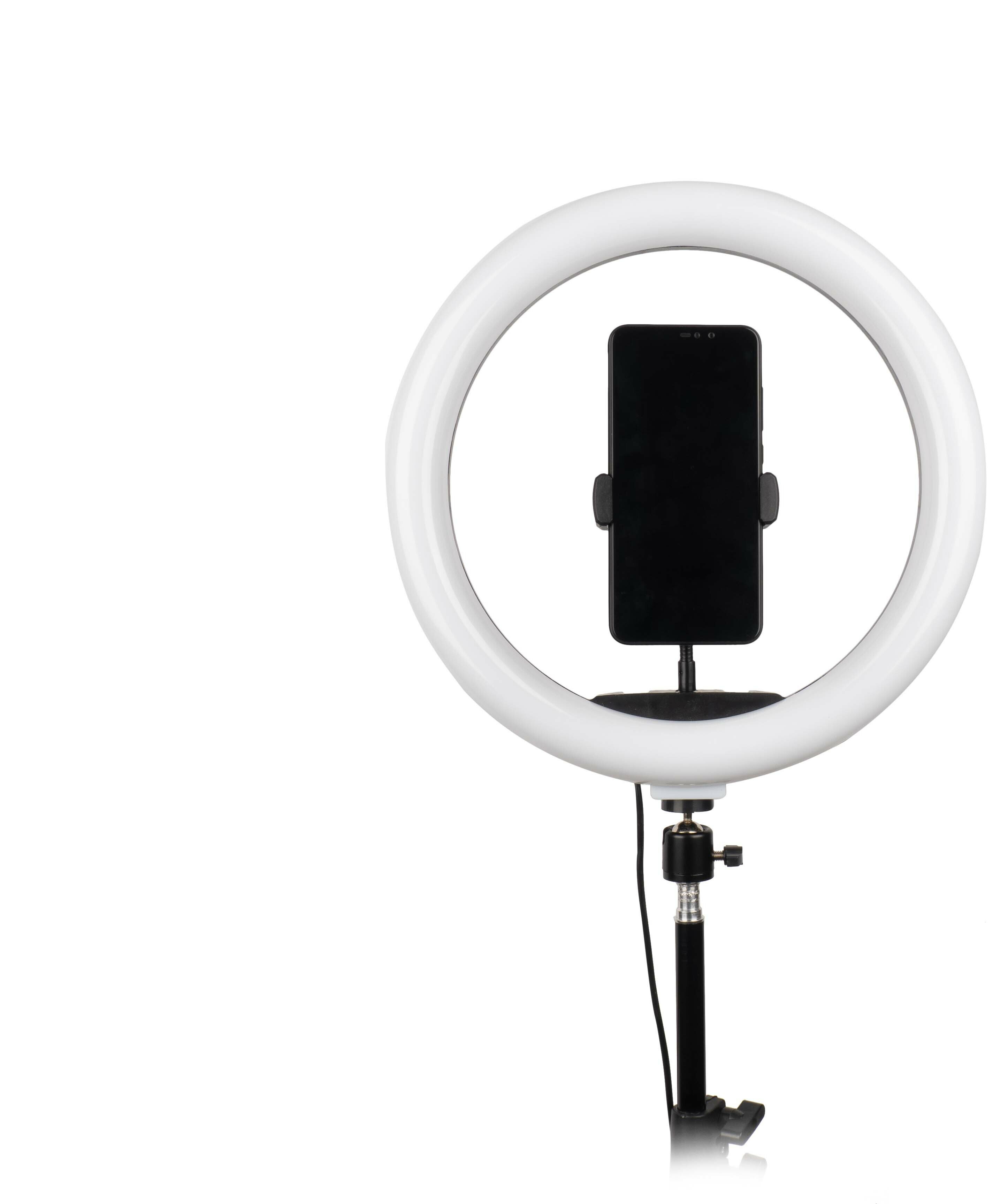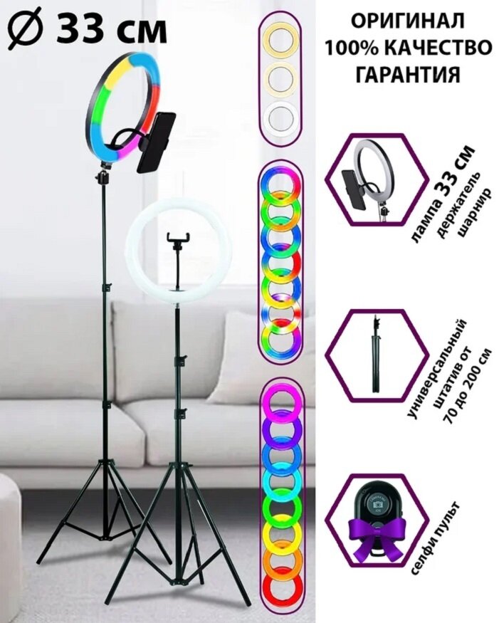 Кольцевая LED-лампа RGB 33 см zKissFashion цветная с напольным штативом/ держатель для телефона/ селфи пульт/ Модель 123297 интересное: