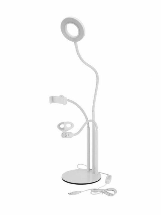 Купить Штатив-держатель смартфона и микрофона с кольцевой LED лампой Selfie 3 в 1, белый