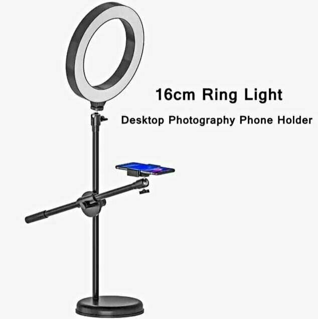 Кольцевой светильник диаметром 16 см с креплением для смартфона интересное: