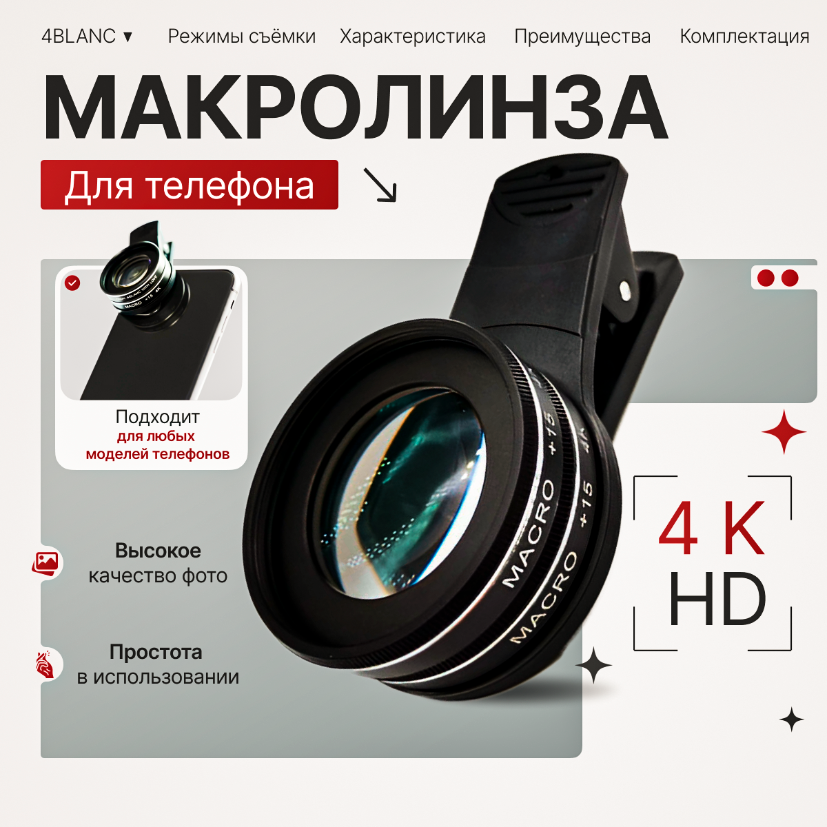 Купить Макролинза и широкоугольная линза для телефона Фишай