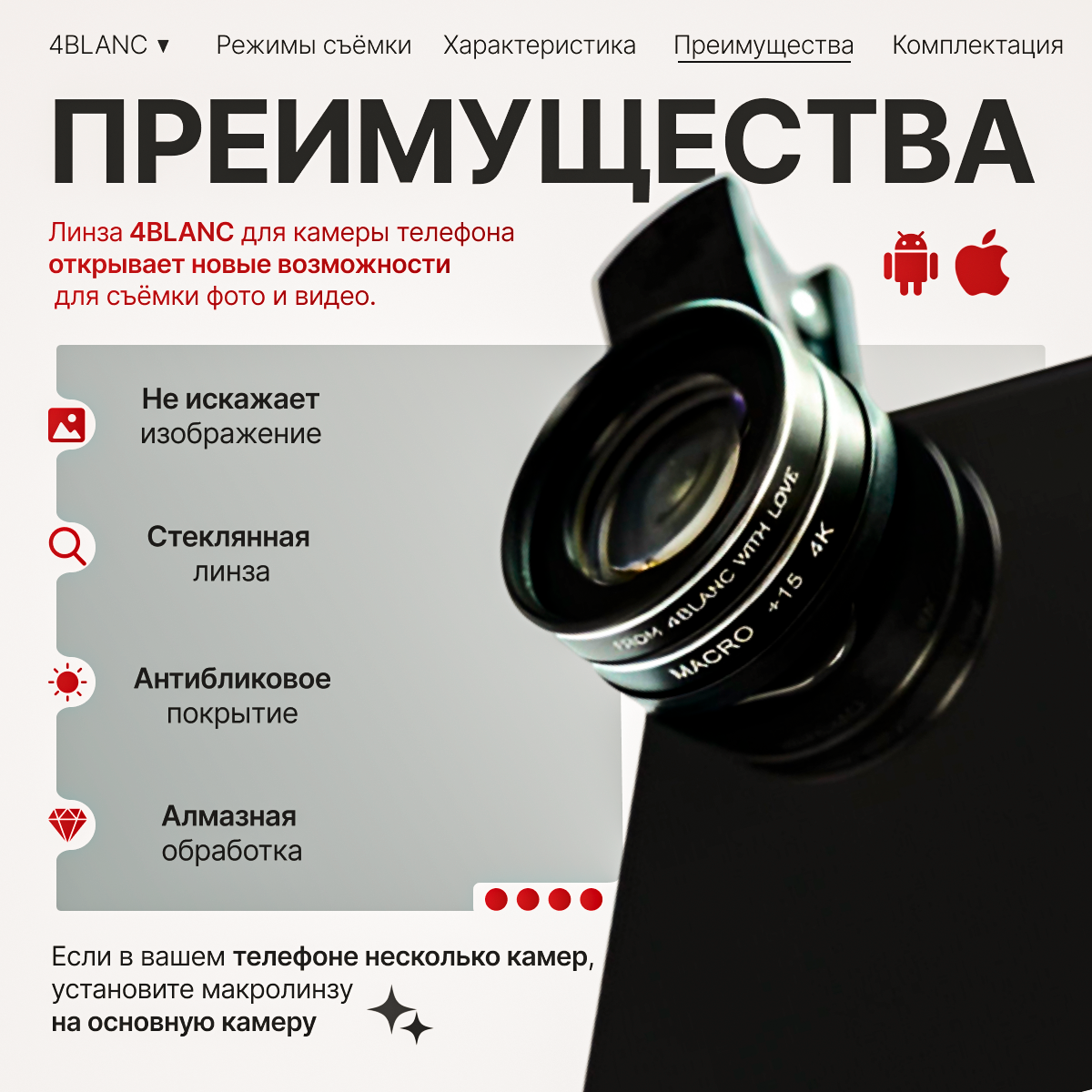 Макролинза и широкоугольная линза для телефона Фишай интересное: