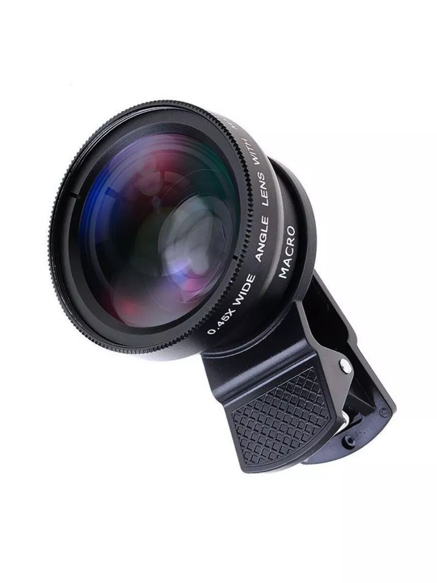 Широкоугольный макрообъектив-линза для телефона 2 в 1, 0.45Х, 37 мм, черный