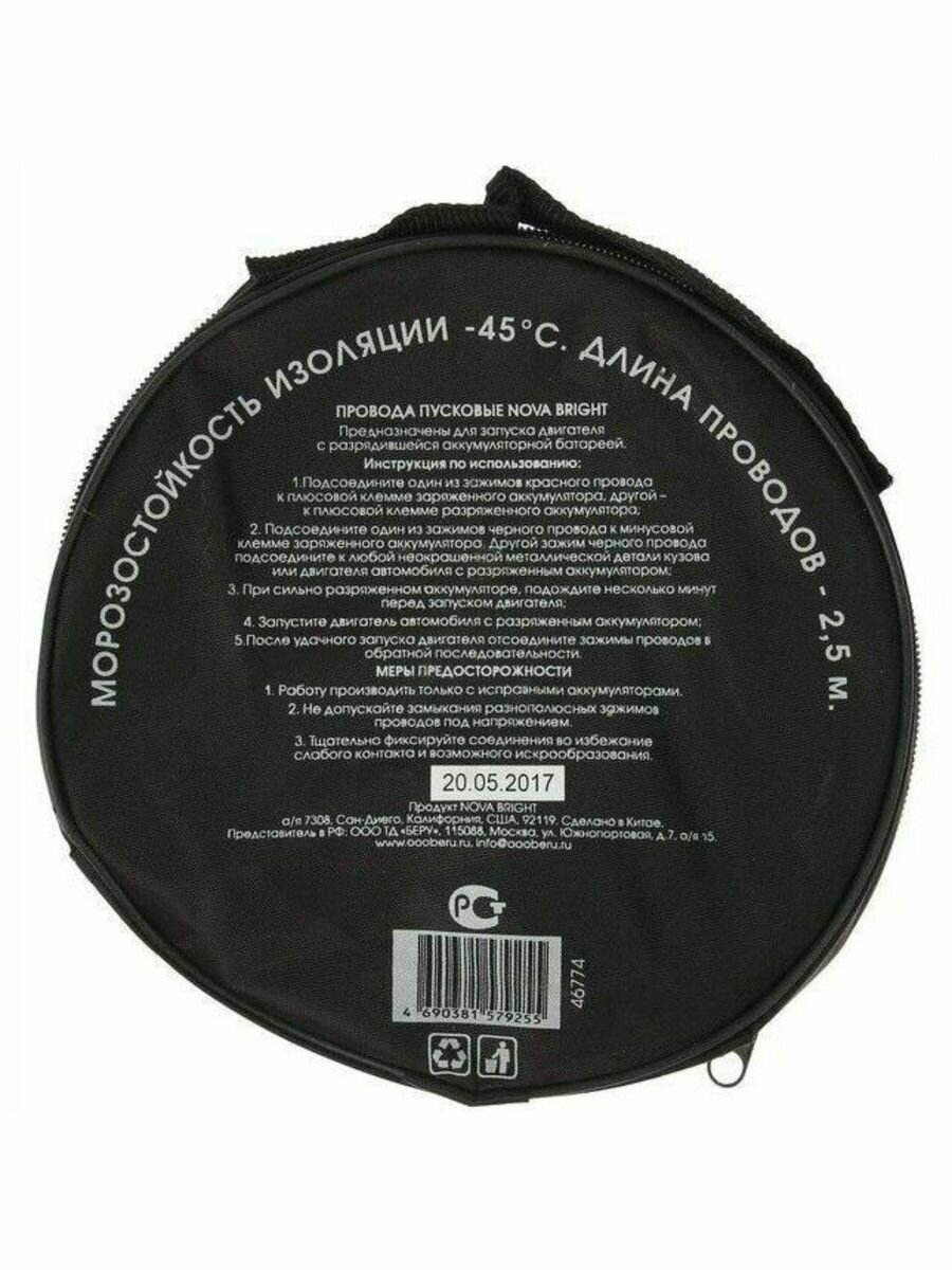 Провода прикуривателя /200 А/ 2,5 м в сумке, Nova Bright-fusion /морозостойкие/ Nova Bright 46774