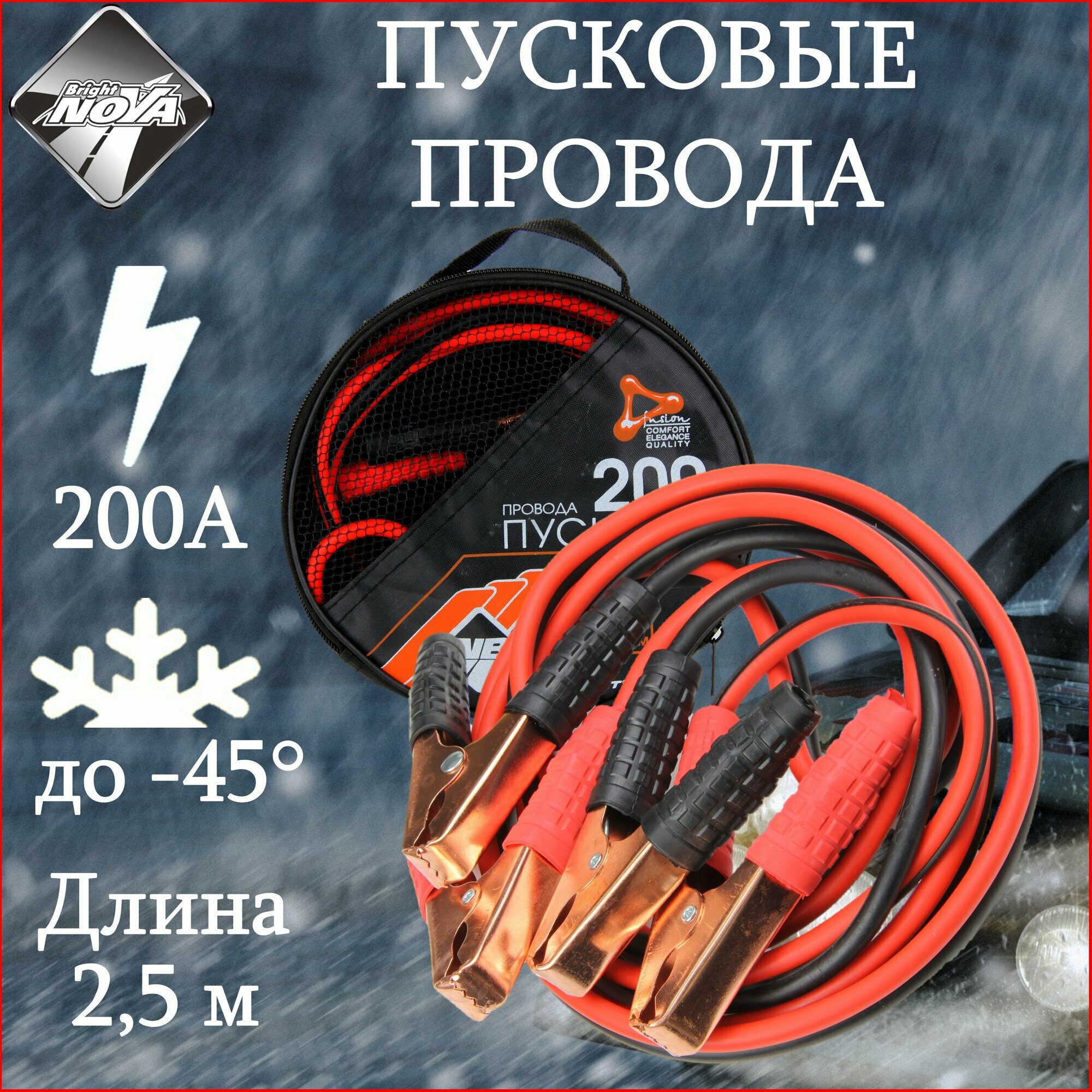 Провода пусковые "Nova Bright-fusion" 200А морозостойкие, в сумке, 2.5 м. интересное: