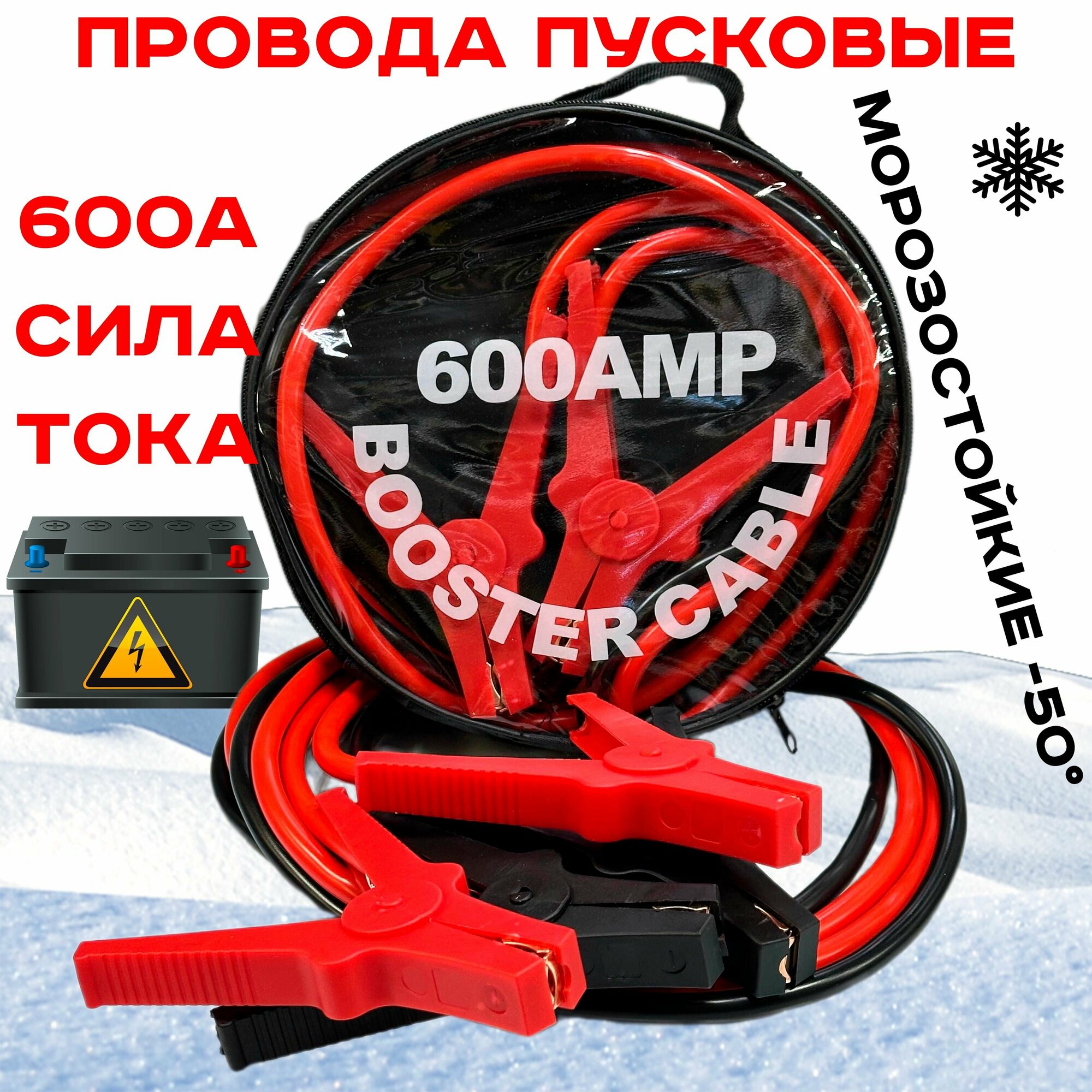 Провода пусковые 600а "медь" по госту морозостойкий силикон 2.5 м пластик. ручки интересное: