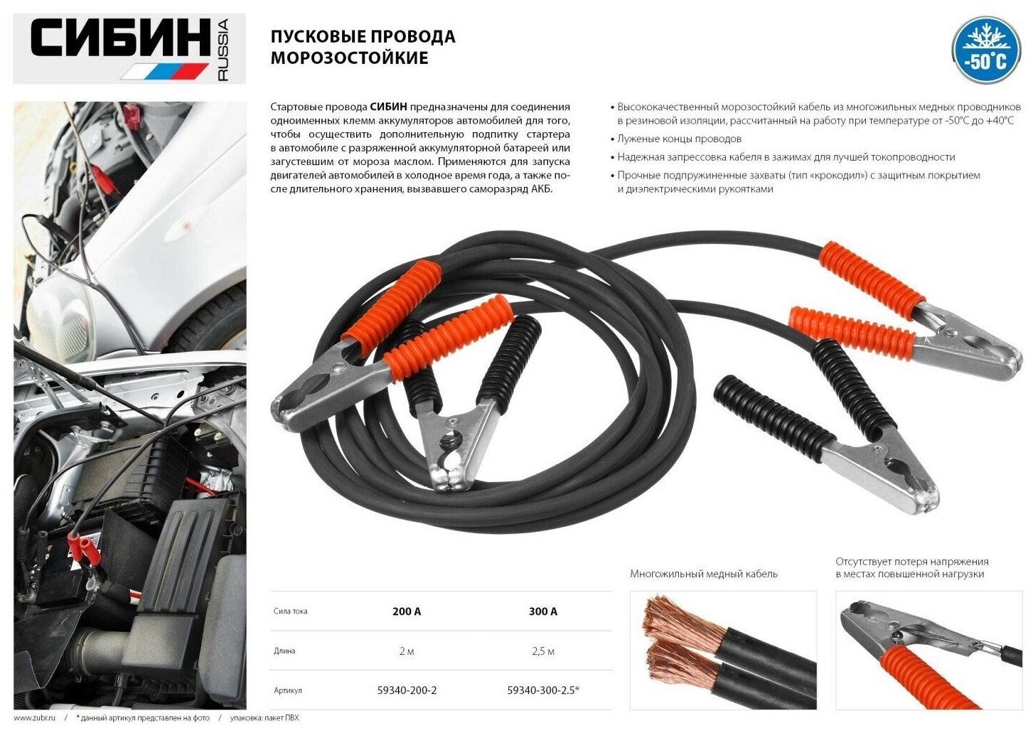 СИБИН 300 А 2.5 м Пусковые морозостойкие провода (59340-300-2.5) интересное: