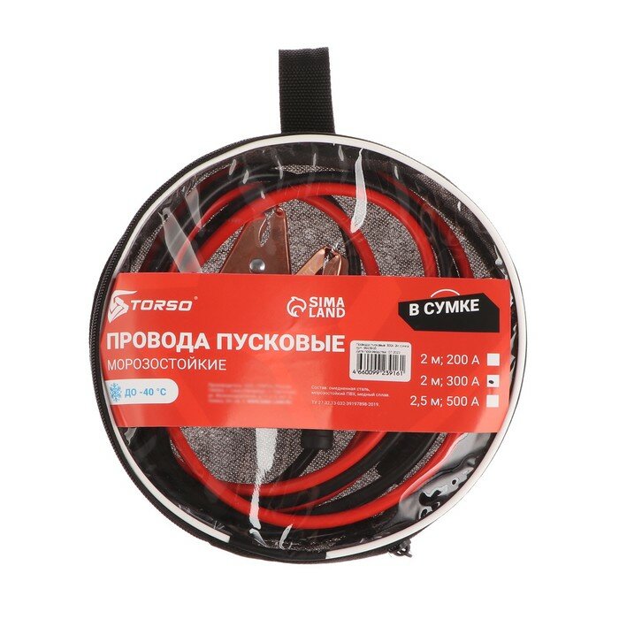Купить TORSO Провода пусковые для прикуривания автомобиля TORSO, 300 А, 2 метра, сумка
