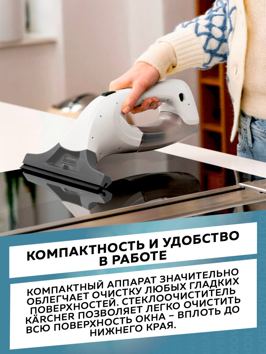 Стеклоочиститель Karcher WV 1 Bath Edition (1.633-619.0), белый, компактный, аккумулятор, 25 мин работы
