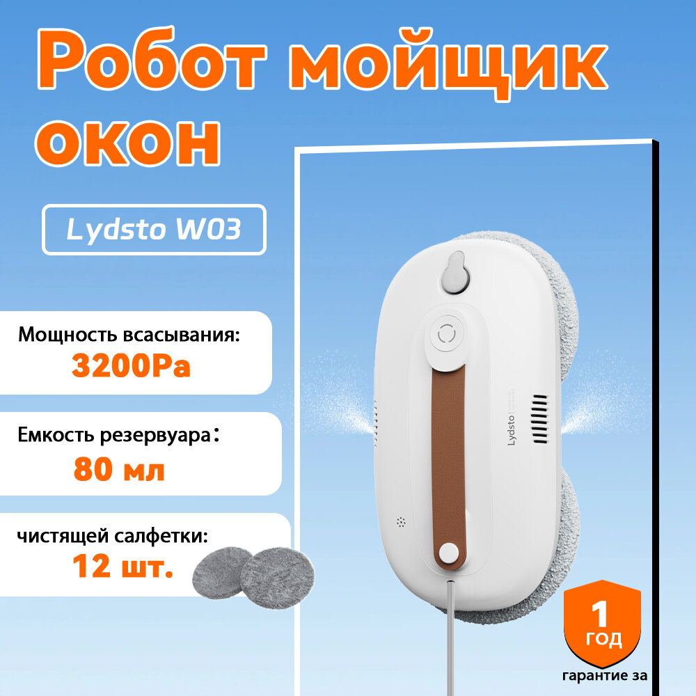 Робот-мойщик окон Lydsto Window Cleaner W03 Белый (XD-CCJQR03A) / Стеклоочиститель для окон, плитки, зеркал интересное: