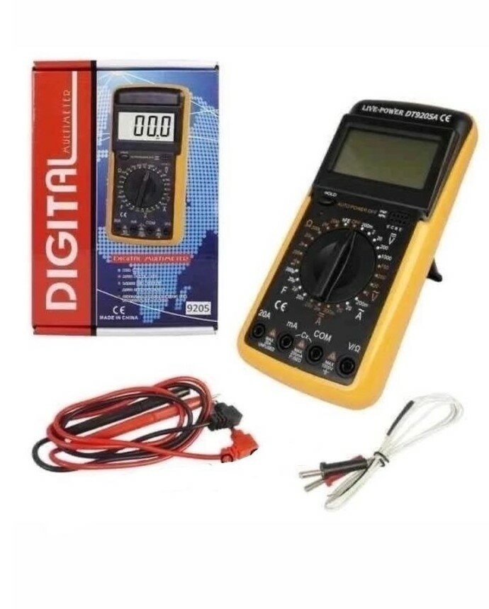 Цифровой мультиметр DT-9205A Тестер крона (Батарейка) В Комплекте / Откидная подставка