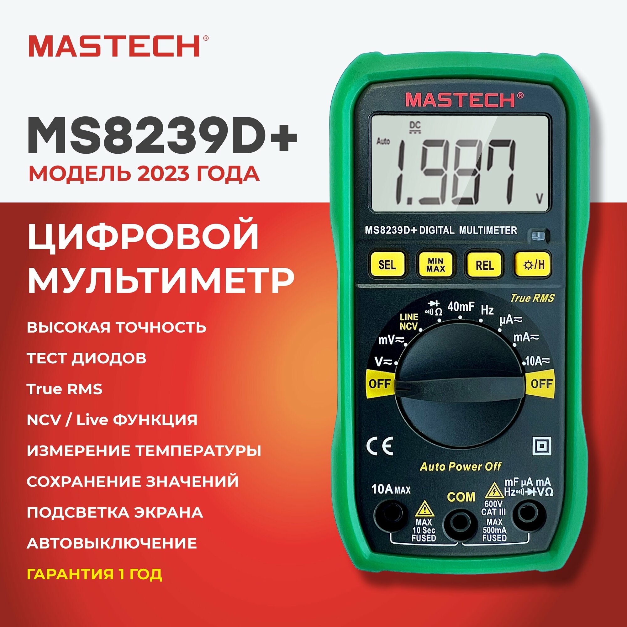 Мультиметр MS8239D+ MASTECH автомат ёмкость частота True RMS MIN/MAX/REL интересное:
