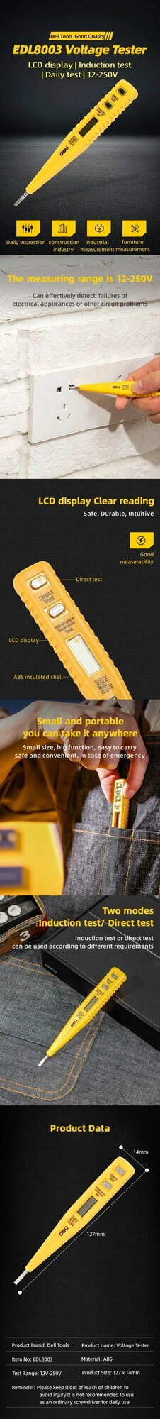 Измерительный и разметочный инструмент Deli Индикаторная отвертка-тестер напряжения цифровая Deli DL8003 (12-250 В)