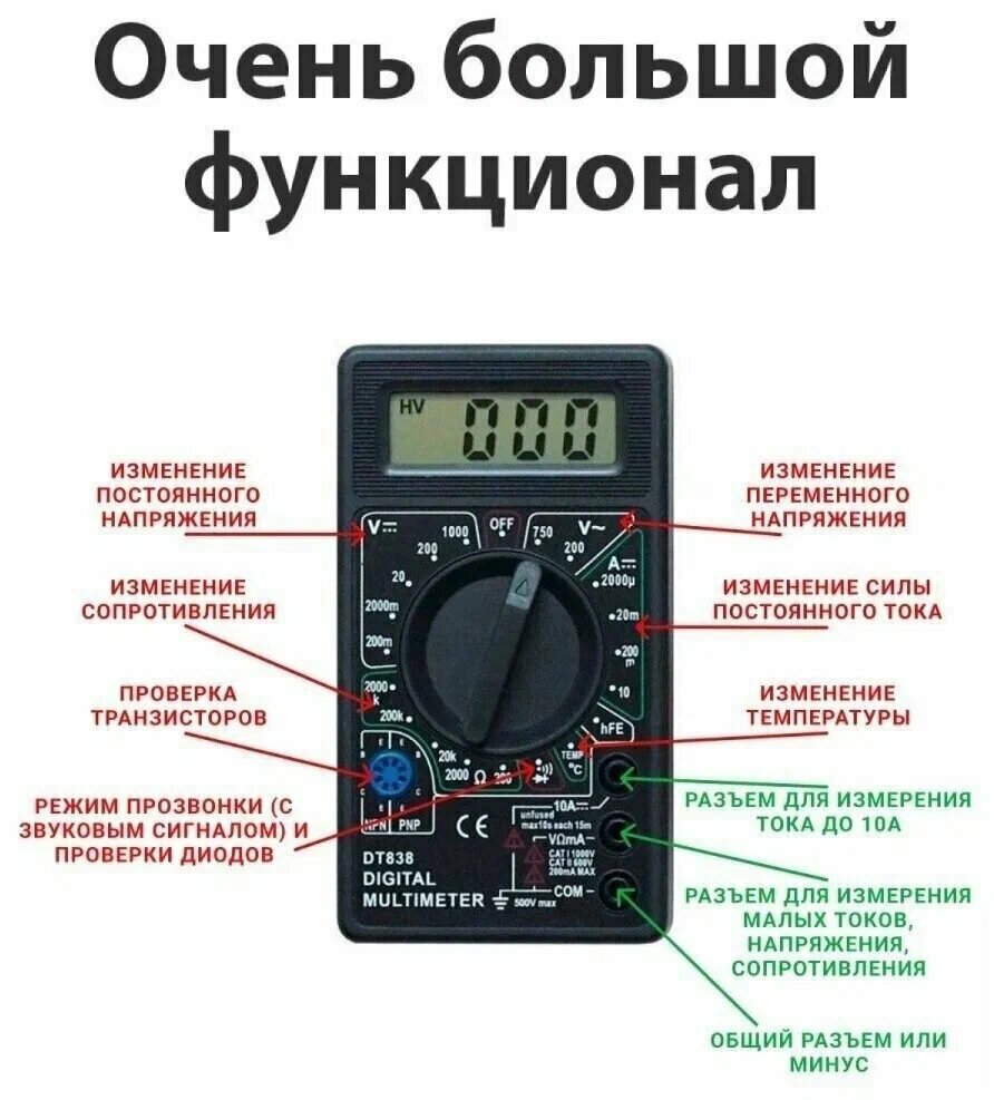 Мультиметр цифровой DT-838 Kasku с прозвоном, с измерением температуры интересное: