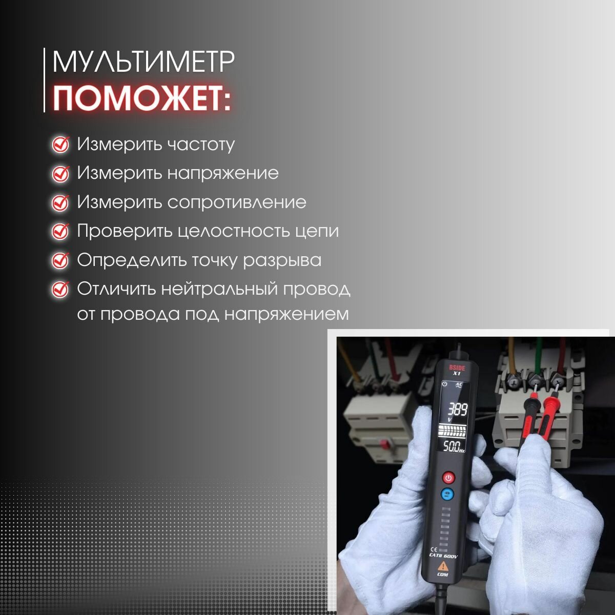 Цифровой мультиметр BSIDE X1 Чёрный / Детектор проводки 2в1 интересное: