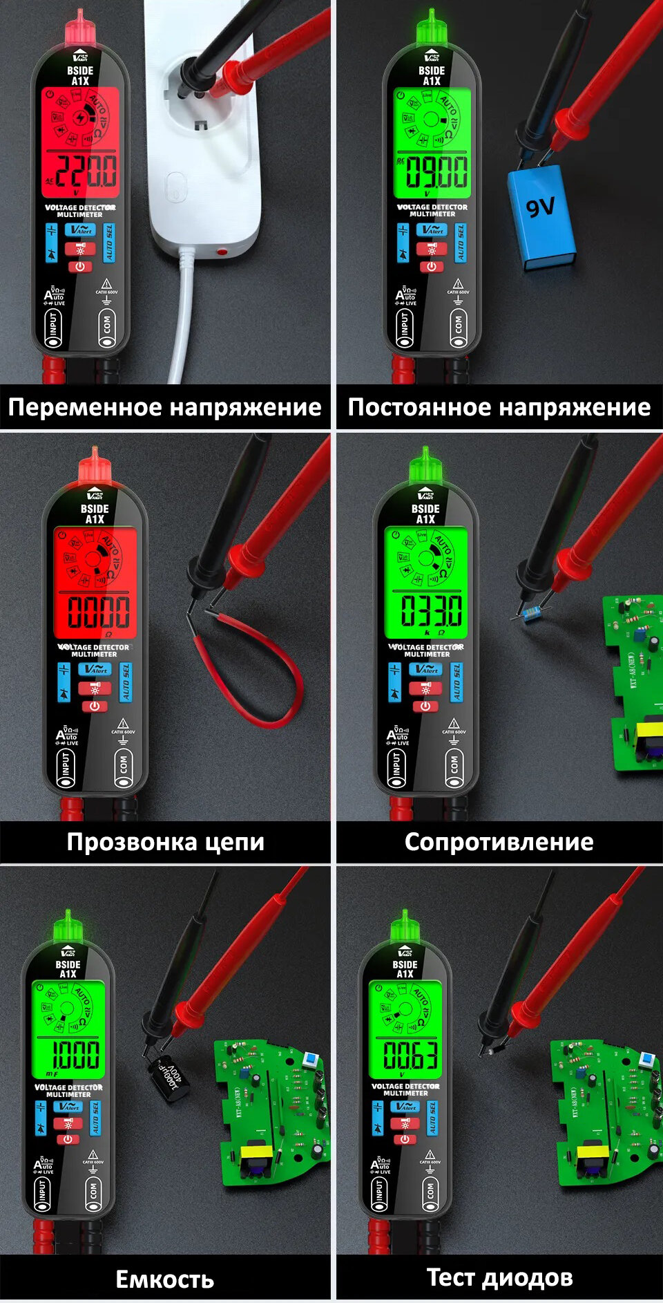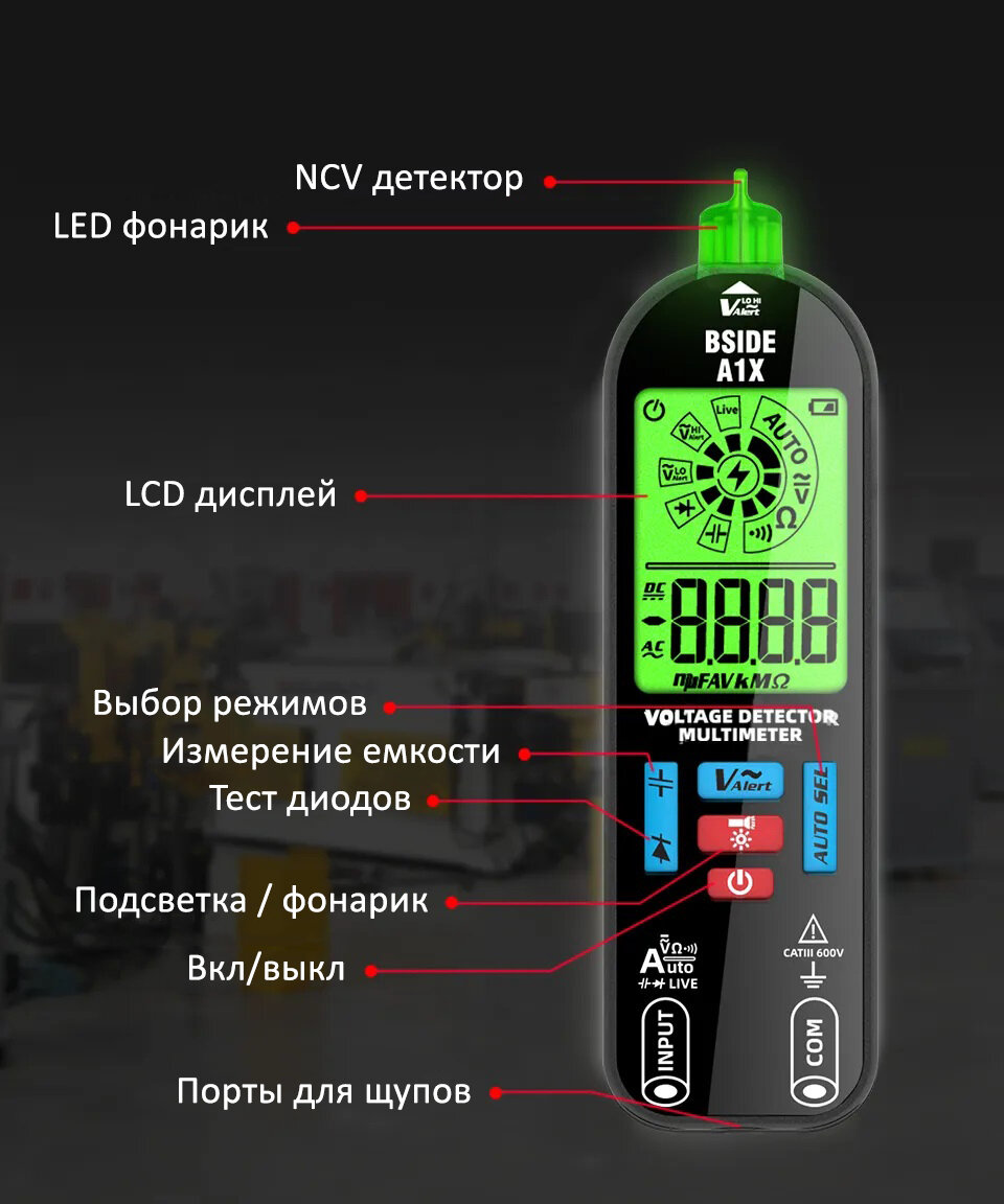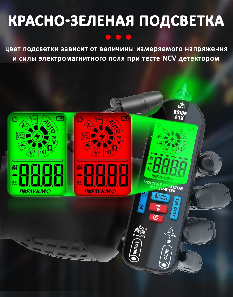 Мультиметр цифровой автоматический / тестер детектор напряжения NCV - BSIDE A1X интересное: